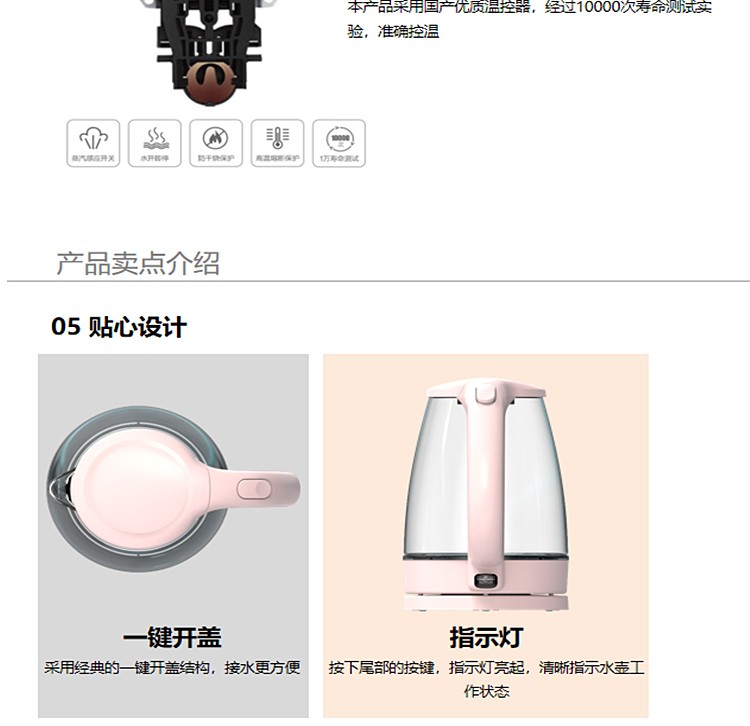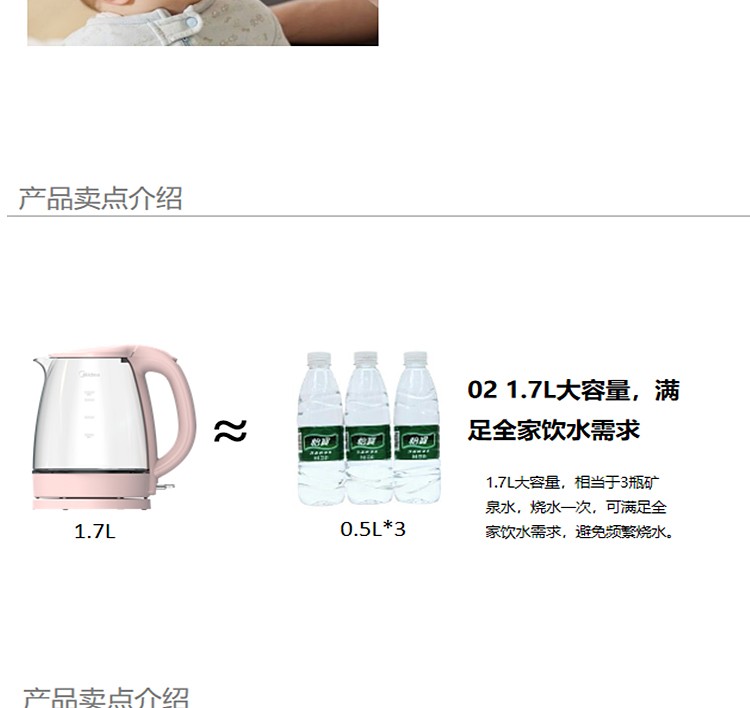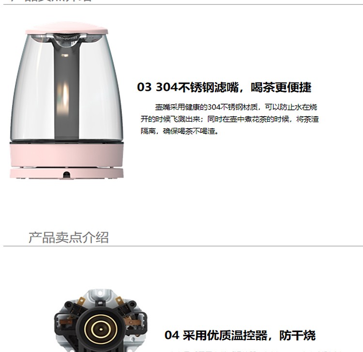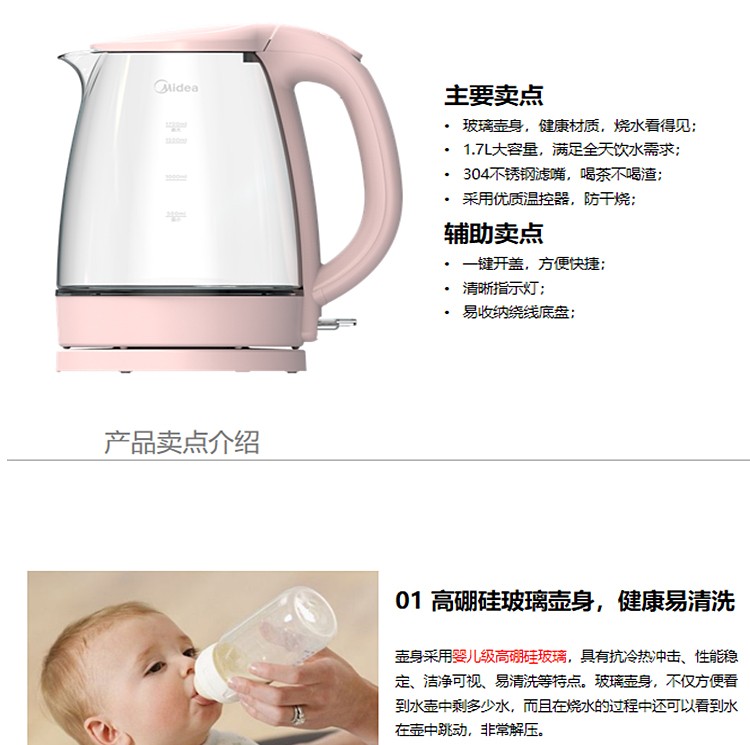 • 商品名称:美的(Midea) GJ1735 玻璃烧水壶电水壶家用热水壶 粉色 1.7L