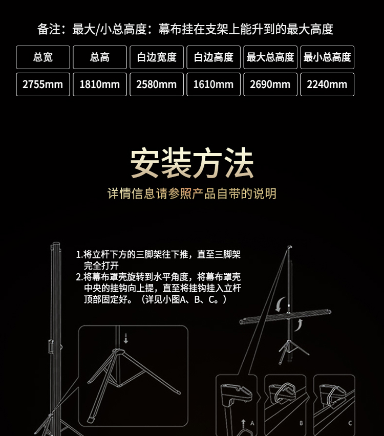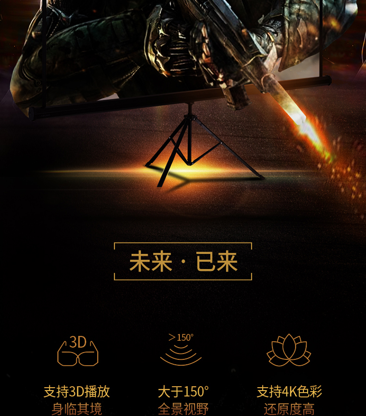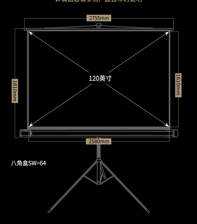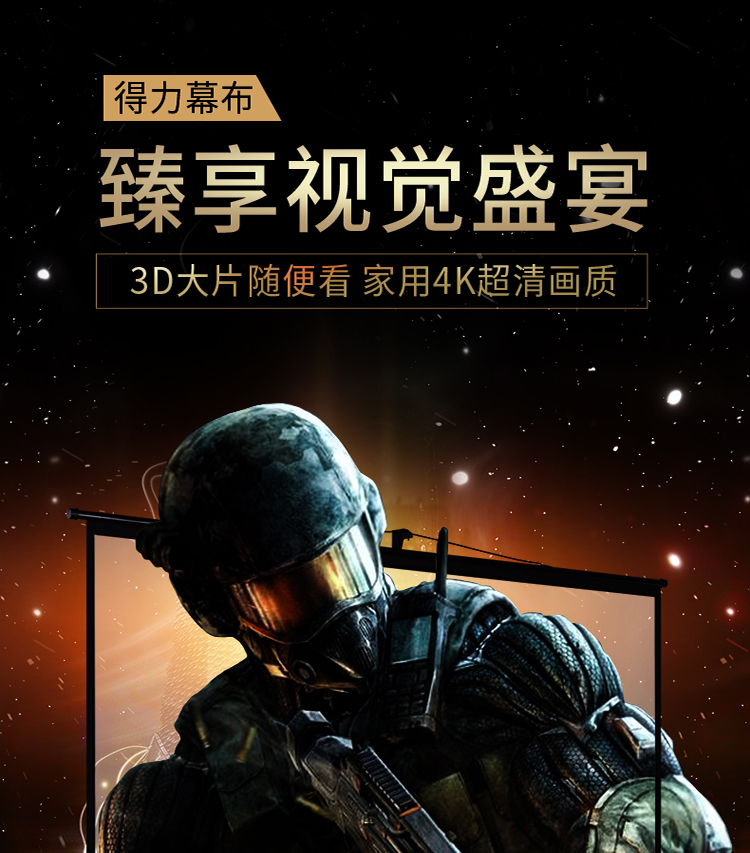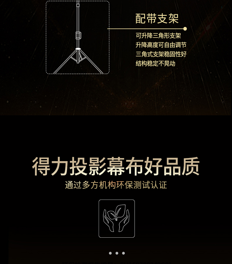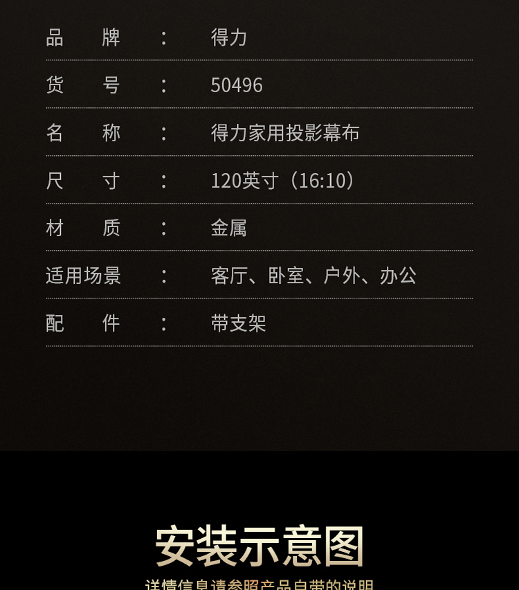 • 商品名称:得力(deli)50496 120英寸 16:10(兼容16:9)支架投影幕布投影布 简易家用投影机投影仪幕布