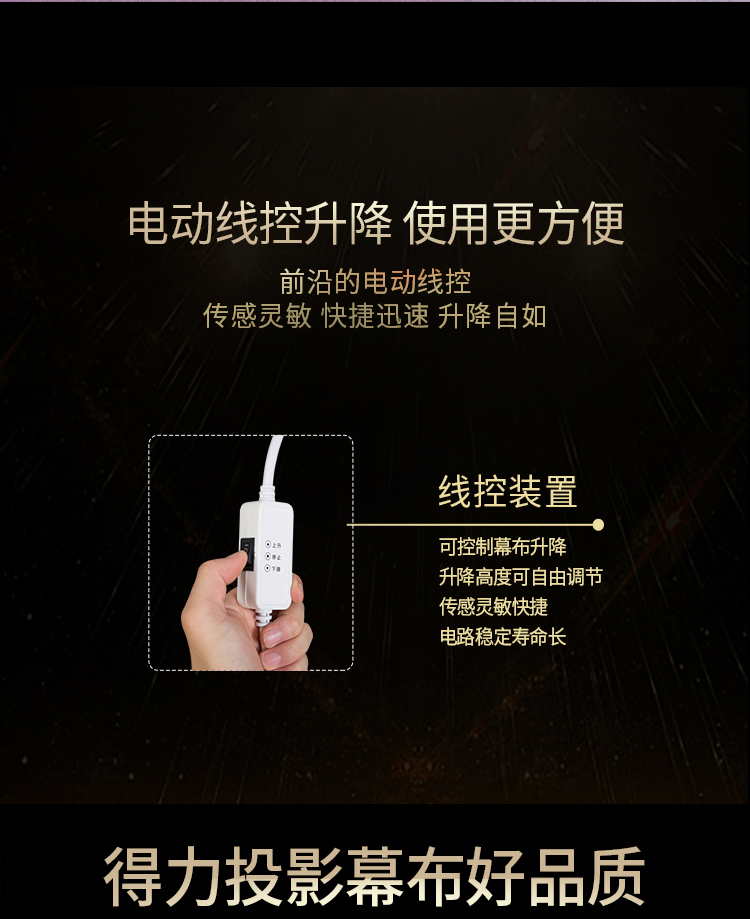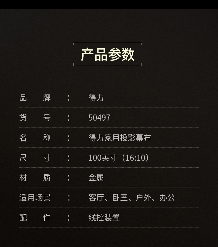 • 商品名称:得力(deli)50497 100英寸 16:10(兼容16:9)电动调节投影幕布投影布 投影机投影仪幕布