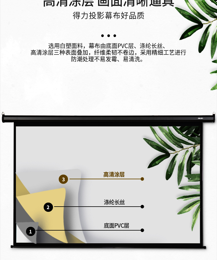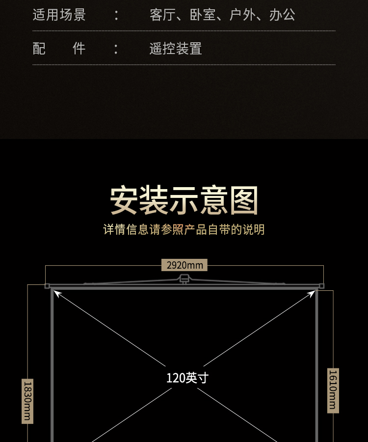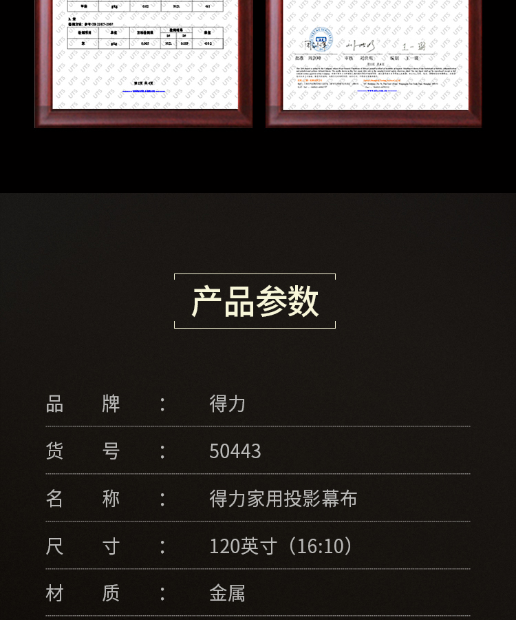 • 商品名称:得力(deli)50443 120英寸 16:10(兼容16:9)遥控电动投影幕布投影布(标配遥控器)投影机投影仪幕布