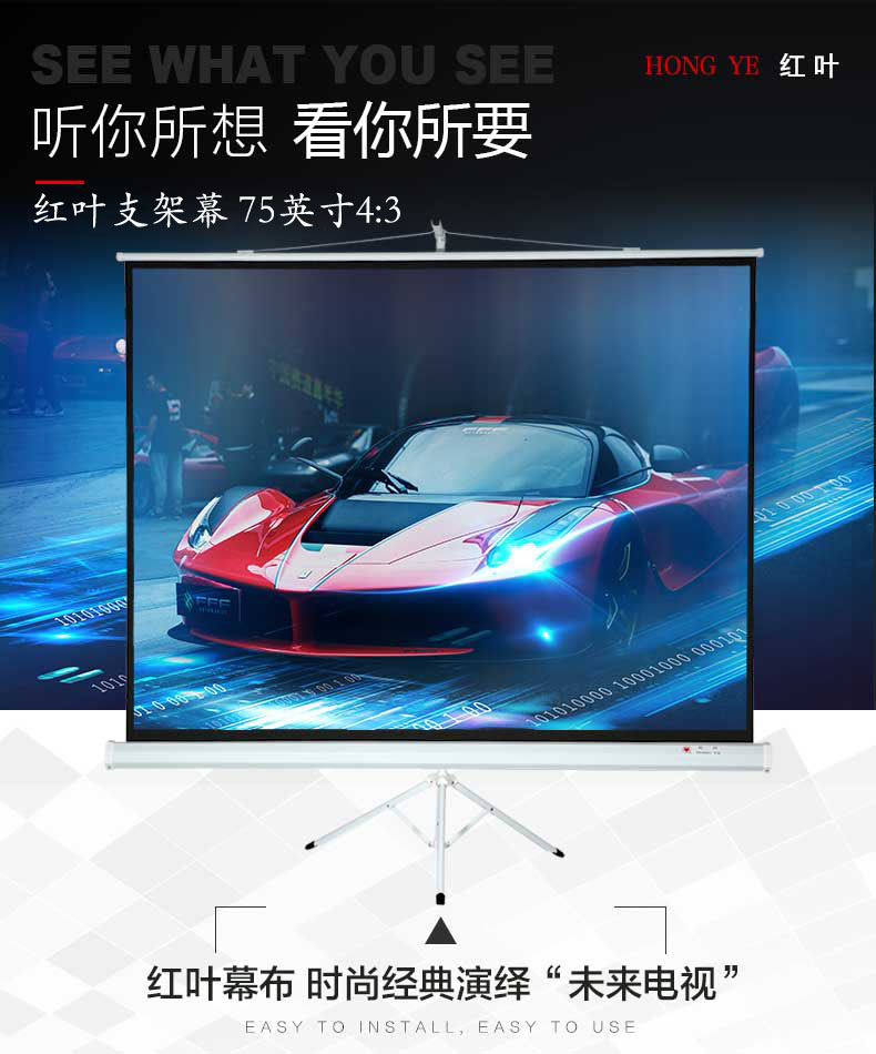 红叶(Red Leaf)75英寸4:3玻珠支架投影幕布投影布 家用投影仪幕布