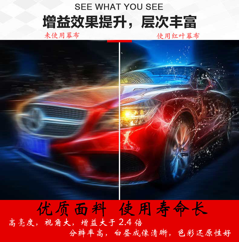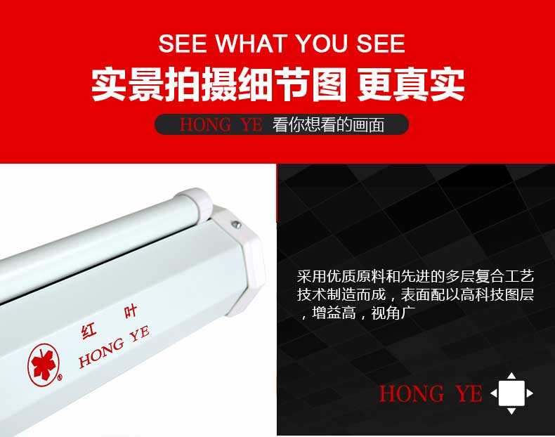 • 商品名称:红叶(Red Leaf)120英寸4:3玻珠支架投影幕布投影布 家用投影仪幕布