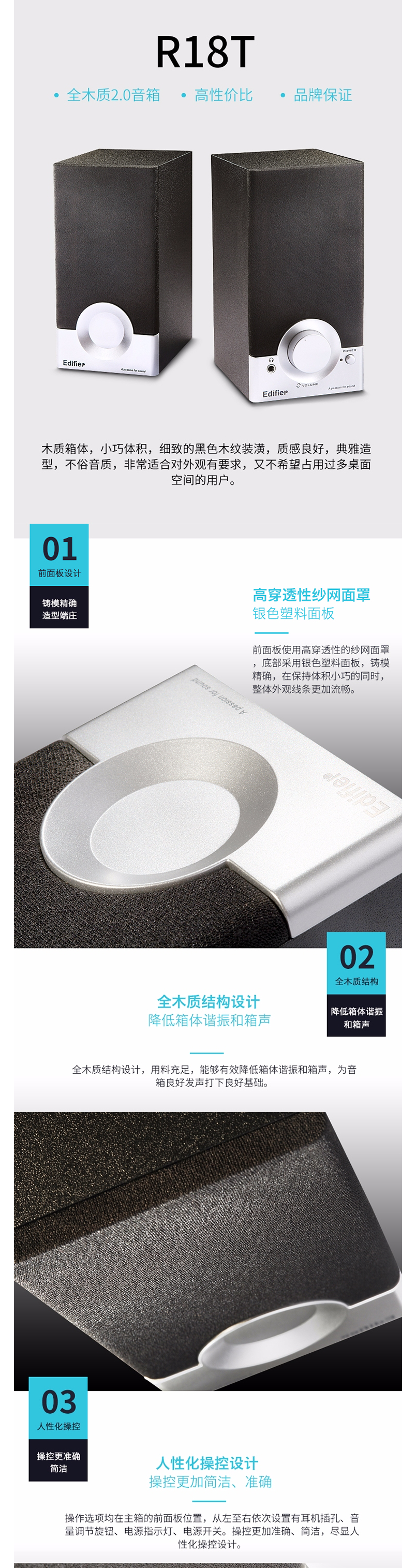 • 商品名称:漫步者(EDIFIER)R18T 2.0声道 木质多媒体音响音箱 电脑音响 黑色