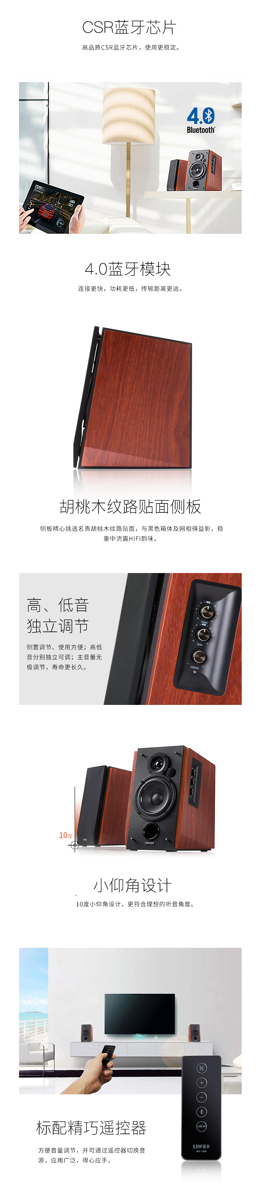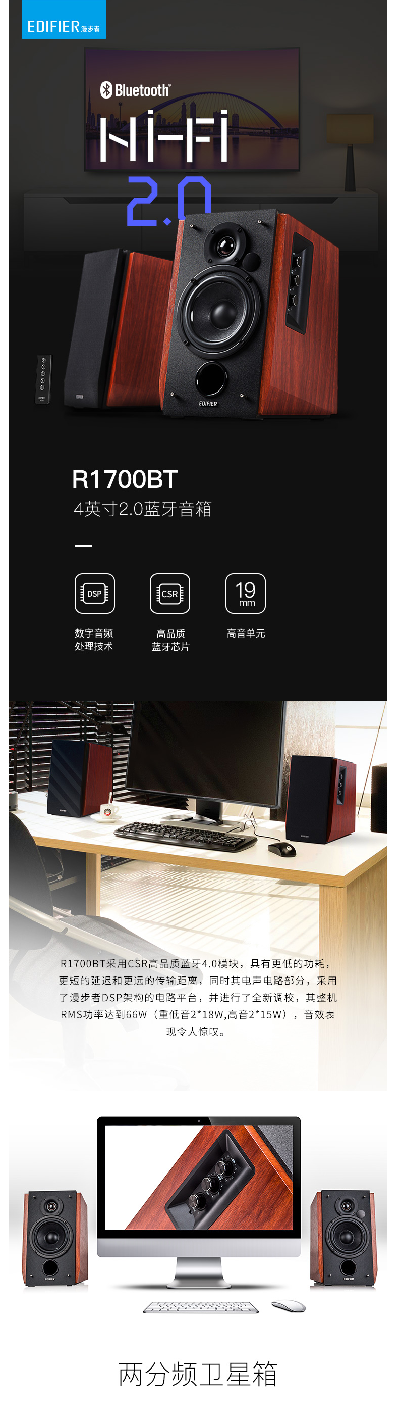• 商品名称:漫步者(EDIFIER)R1700BT 4英寸2.0电脑音响 多媒体音响 蓝牙音箱引领者 音响 音箱