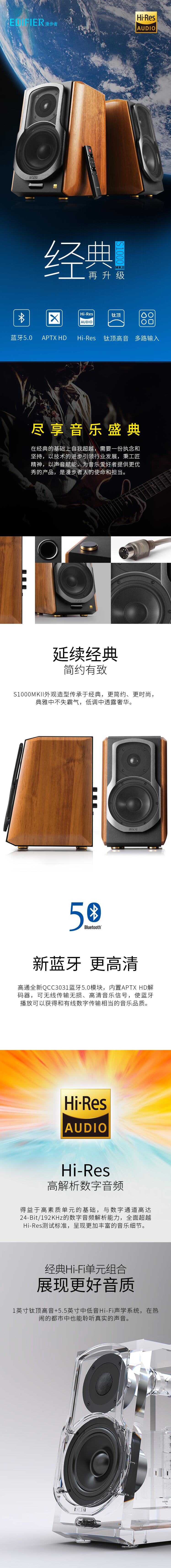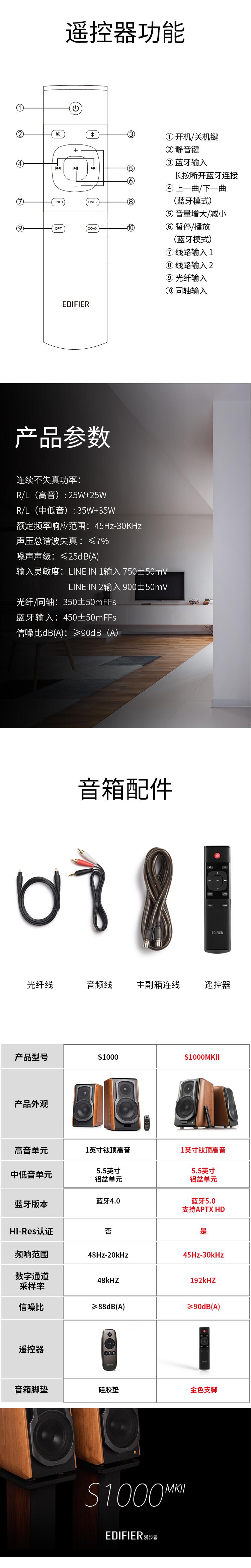 • 商品名称:漫步者(EDIFIER) S1000MKII 新经典旗舰 HIFI级2.0音箱 蓝牙音箱音响 (S1000升级版)