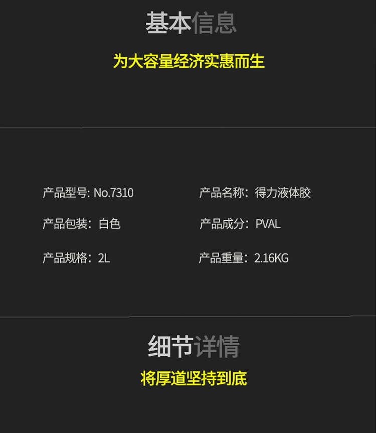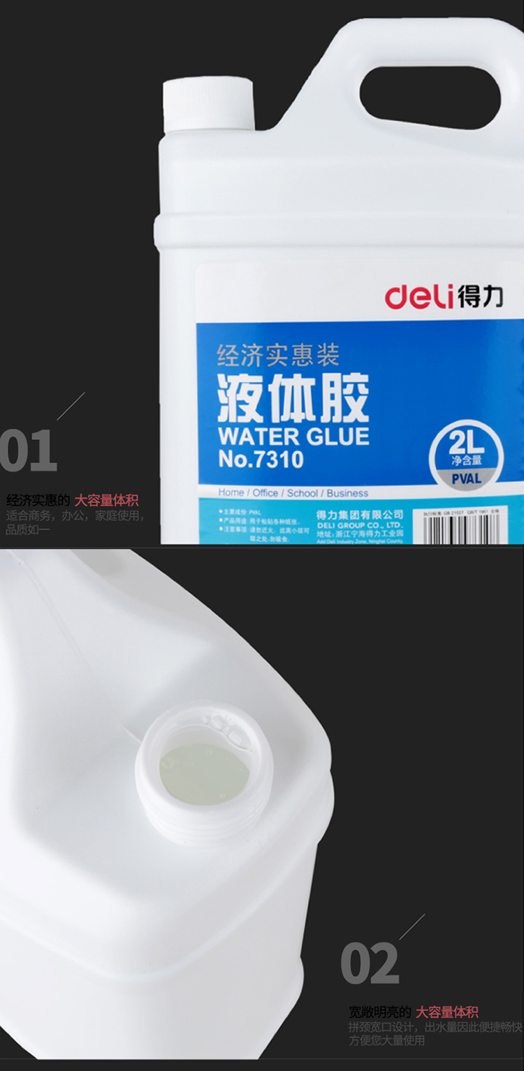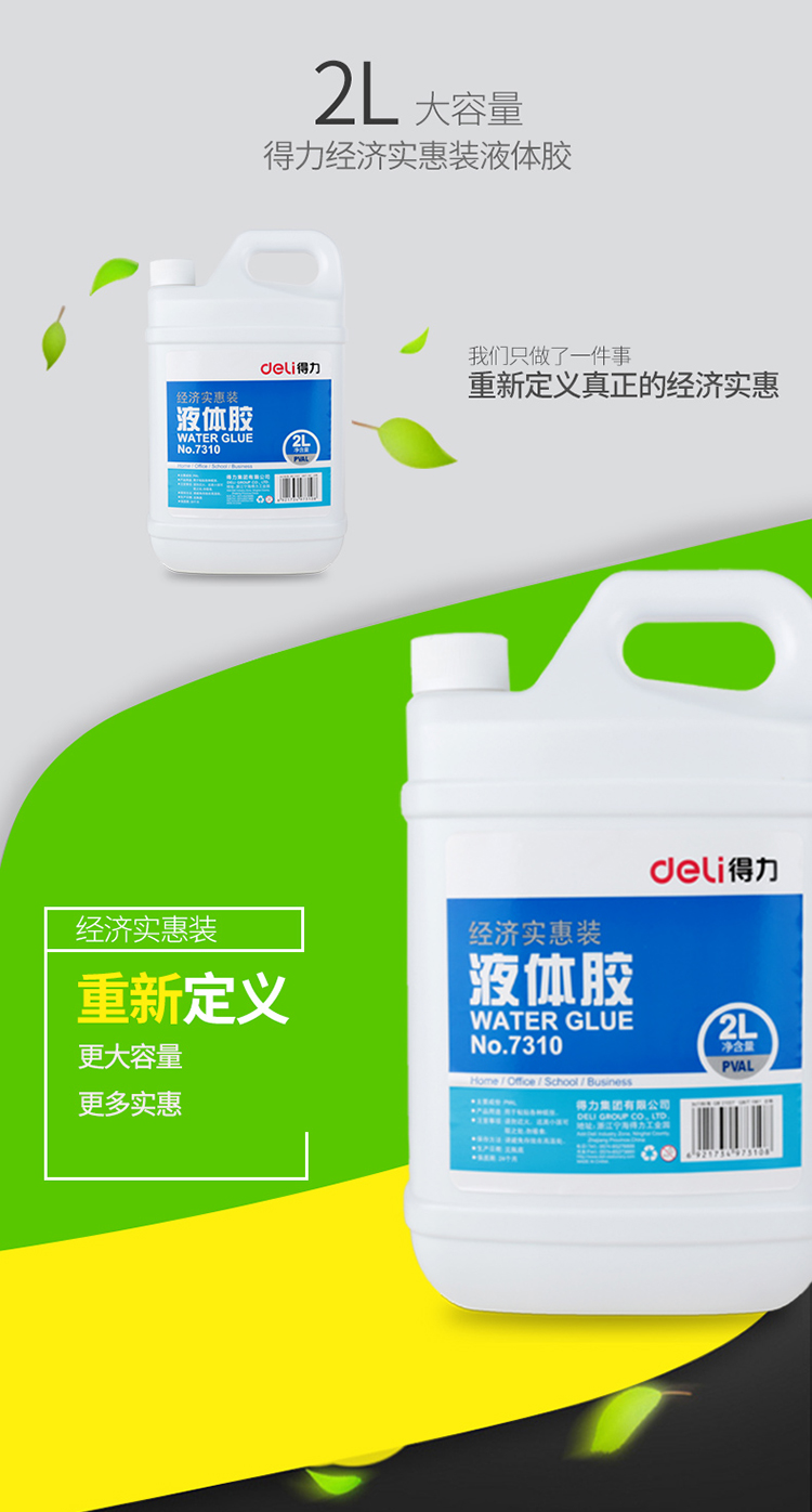 • 商品名称:得力(deli) 7310 大桶装液体胶水 玩具材料胶水 2L