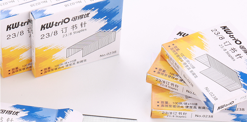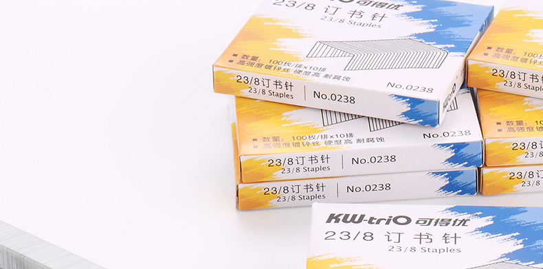 • 商品名称:可得优(KW-triO) 0238 23/8重型订书针办公加厚订书钉 强穿透力强耐腐蚀可装订50页