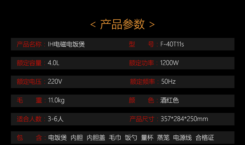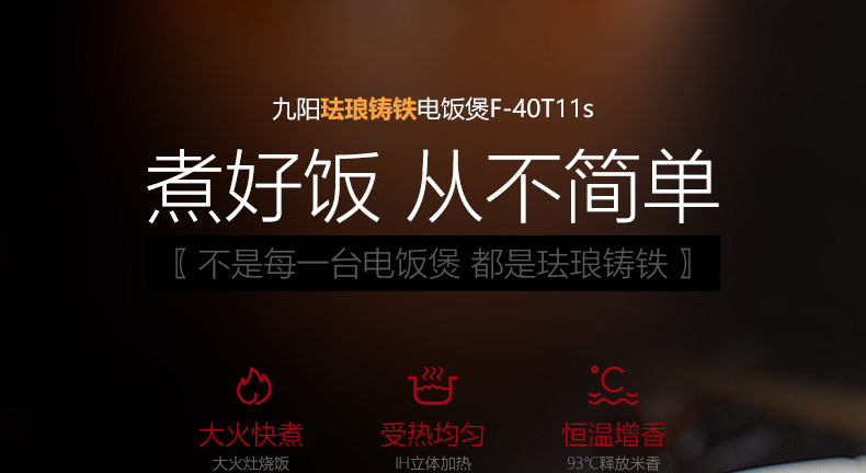 • 商品名称:九阳(Joyoung) 40T11s 电饭煲 珐琅铁釜内胆 多功能IH加热电饭锅 4L