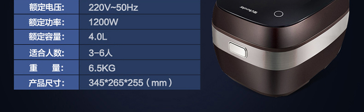• 商品名称:九阳(Joyoung)JYF-40T2 电饭煲电饭锅 铁釜内胆 智能IH电磁加热 4L