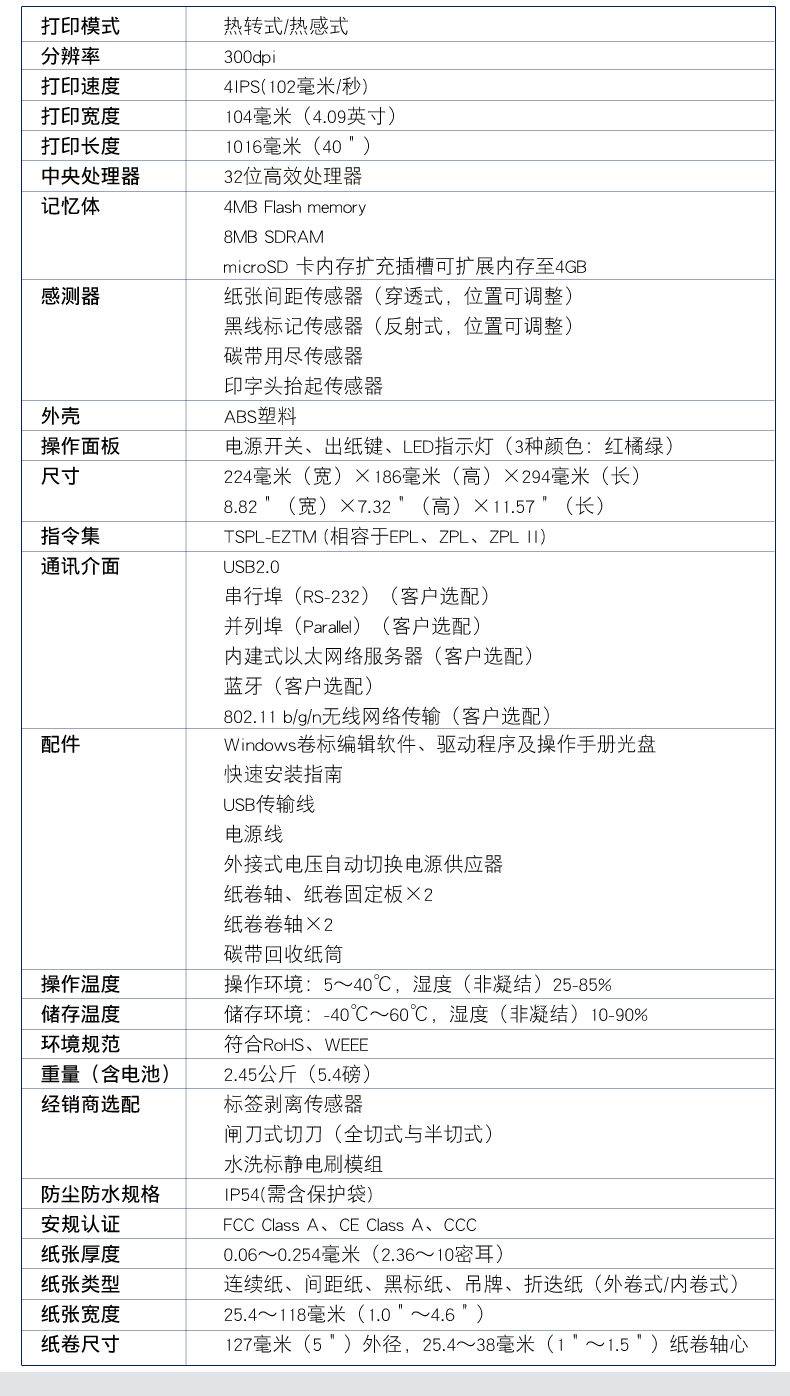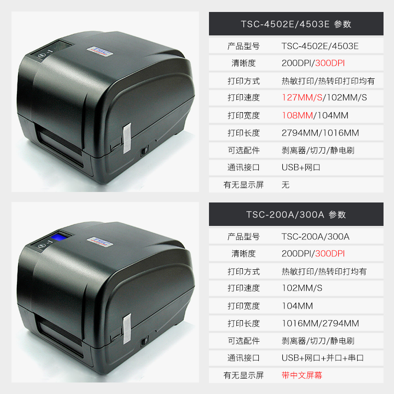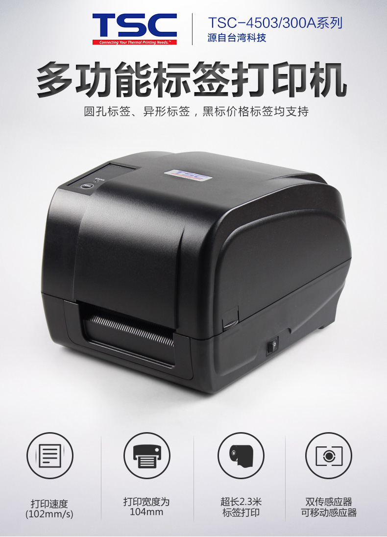 • 商品名称:TSC台半 T-4503E/300A 不干胶标签打印机 热转印/热敏条码机 带网口 300dpi