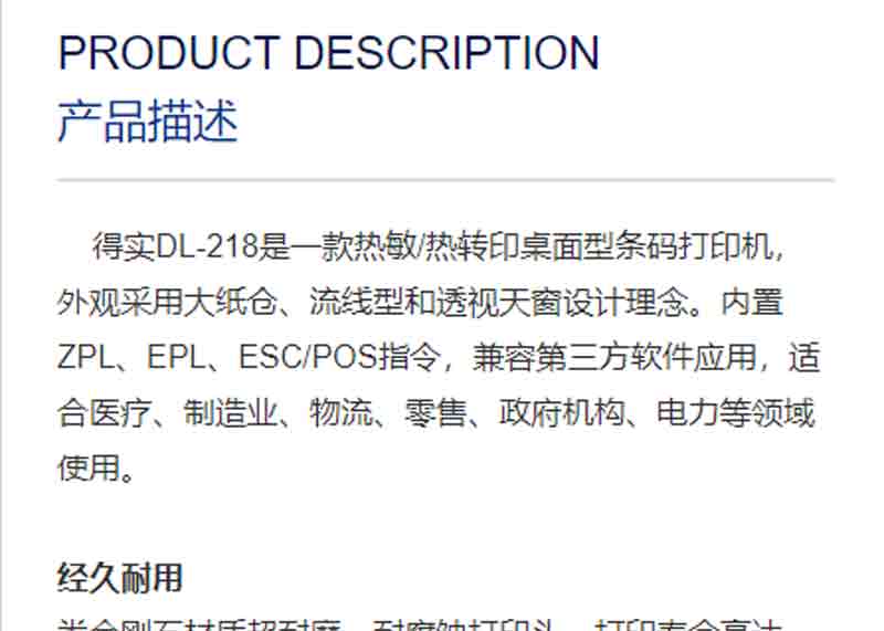 • 商品名称:得实(Dascom)DL-218 桌面型条码打印机 热敏热转印打印机