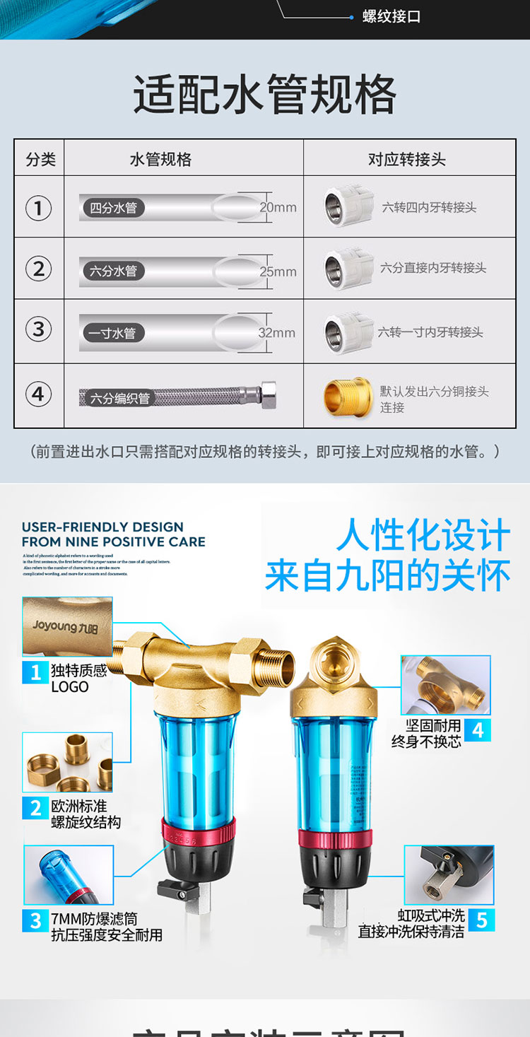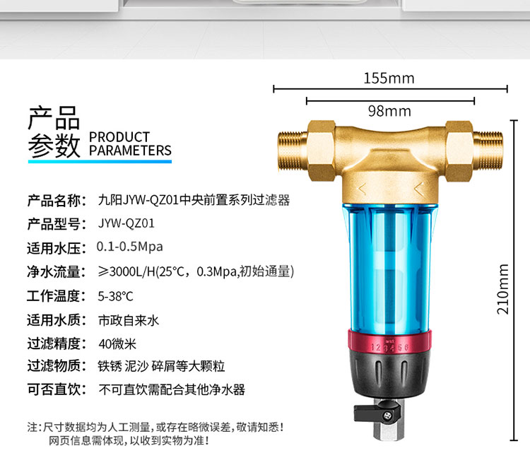 • 商品名称:九阳(Joyoung)JYW-QZ01 前置过滤器 家用反冲洗大流量净水机前置过滤器