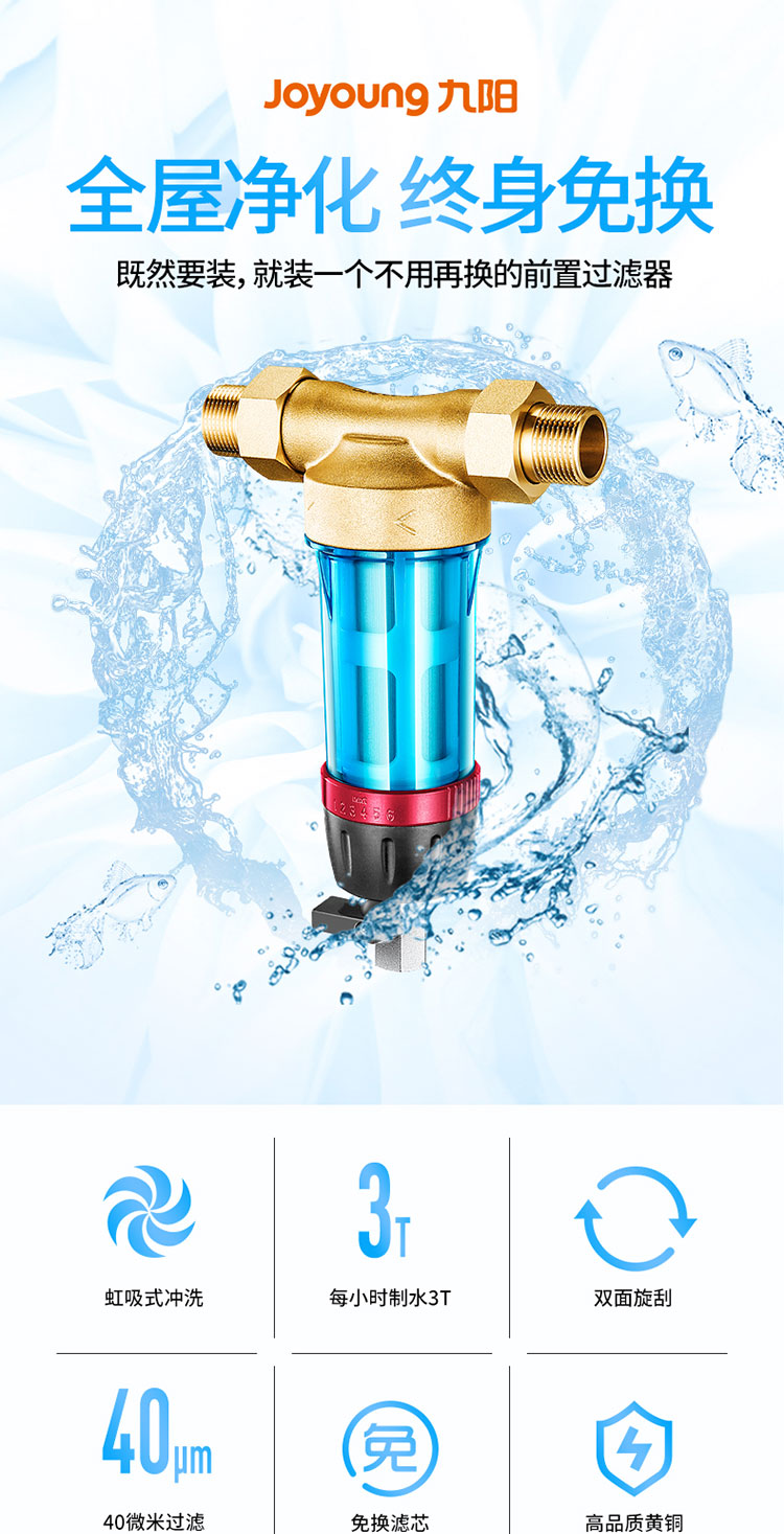 九阳(Joyoung)JYW-QZ01 前置过滤器 家用反冲洗大流量净水机前置过滤器