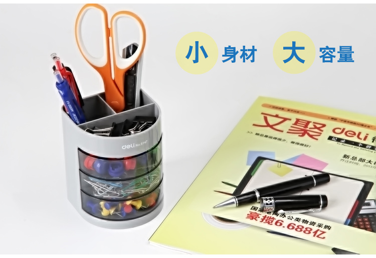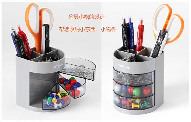 • 商品名称:得力(deli)9147 三层多功能办公笔筒 多色随机发