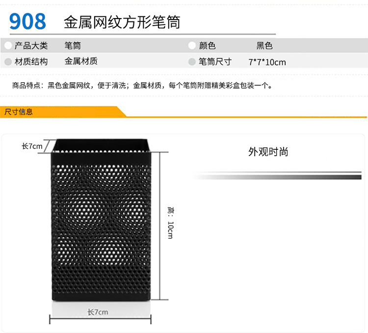 • 商品名称:得力(deli)908 金属网纹方形笔筒
