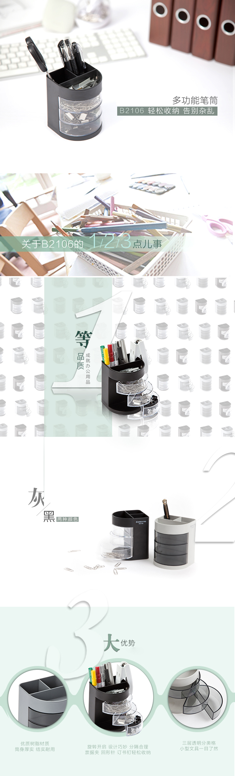 • 商品名称:齐心(Comix)B2106 三层多功能办公盒/笔筒 颜色随机
