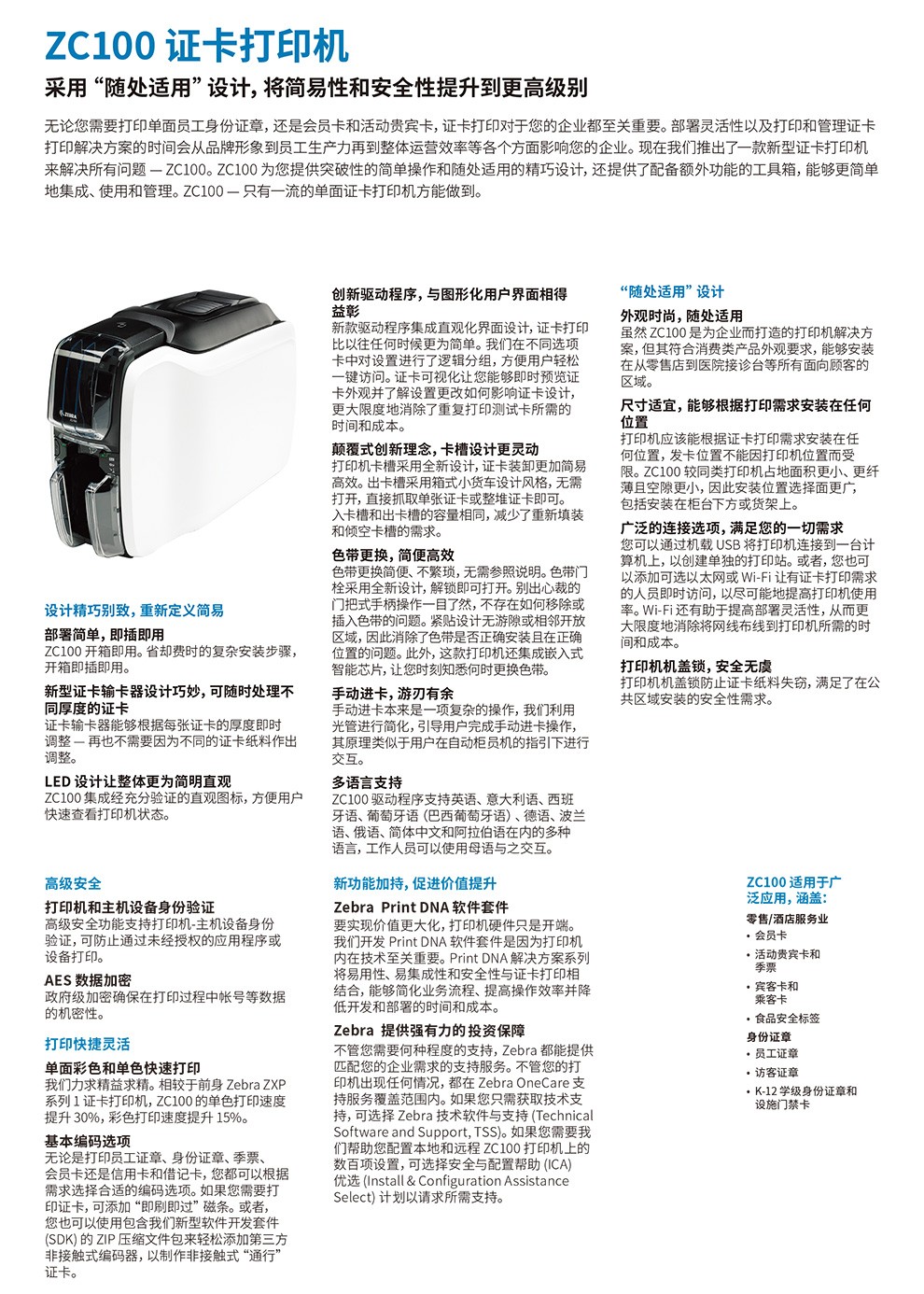 • 商品名称:斑马(ZEBRA) ZC100 证卡打印机彩色制卡机 卡片打印机 彩色单面