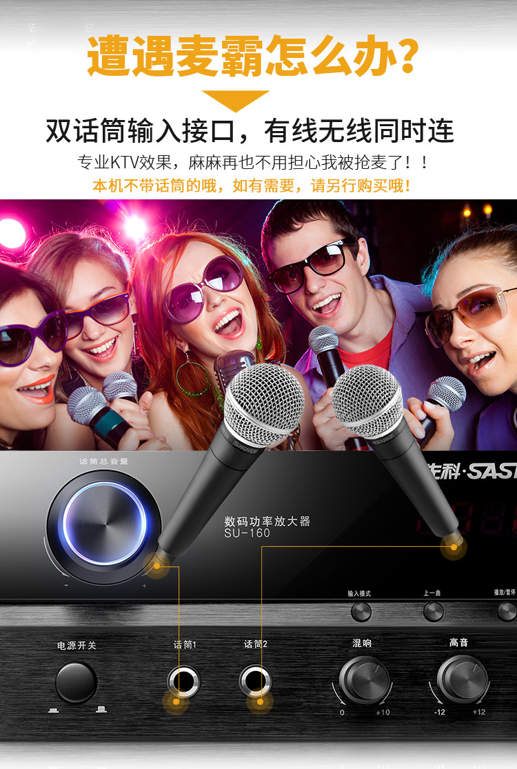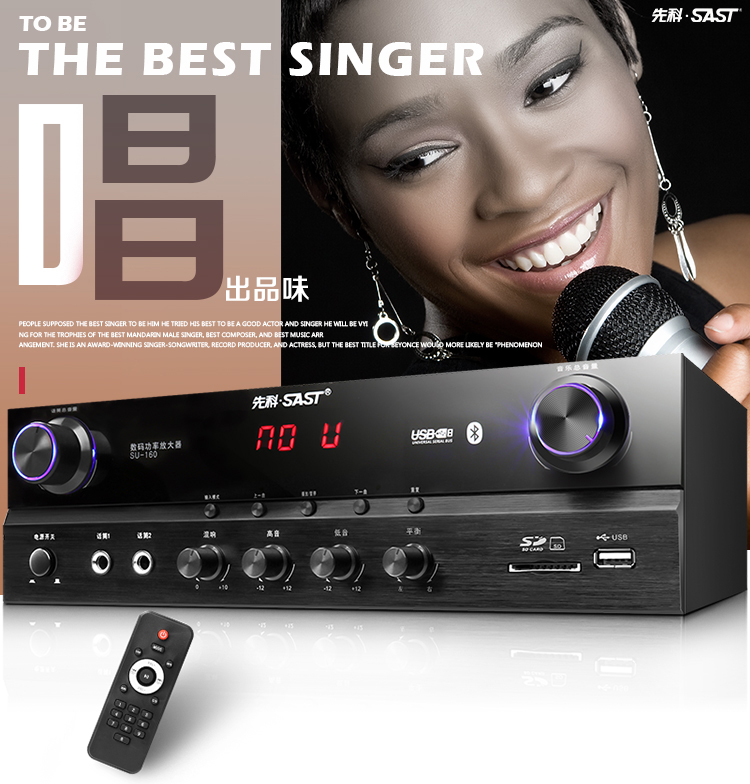 先科(SAST)SU-160 定阻功放机 家庭影院ktv音箱套装卡包蓝牙音响(黑色)