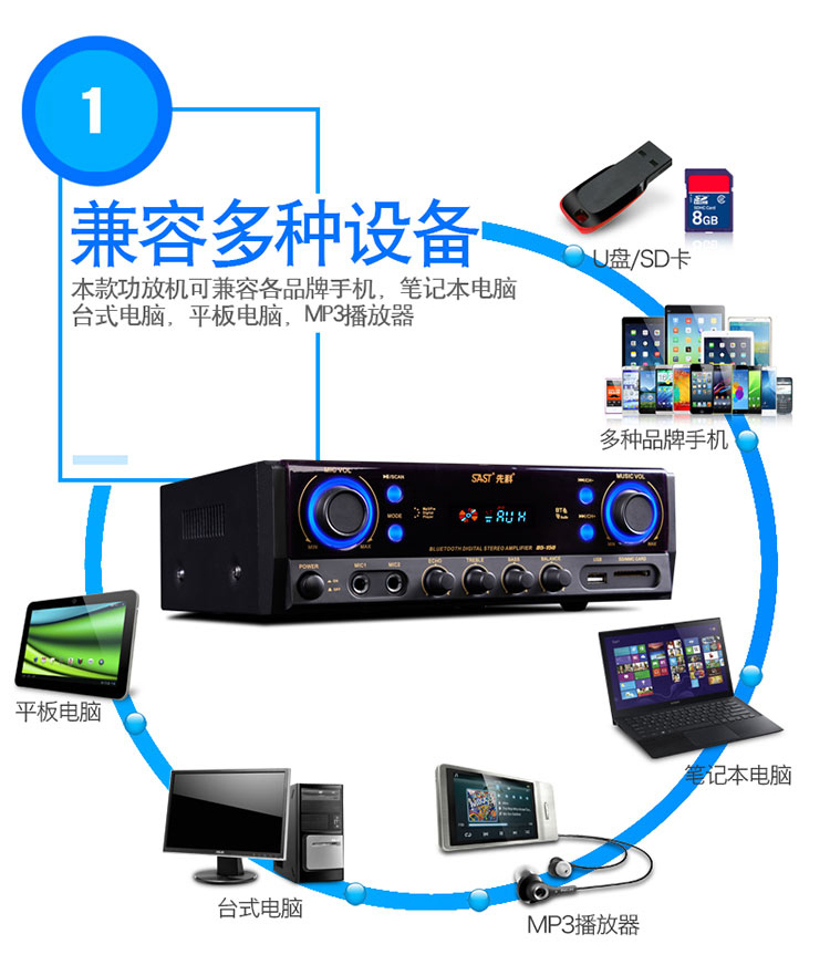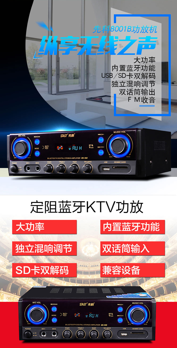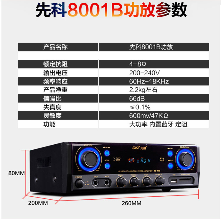 • 商品名称:先科(SAST)SA-8001B 定阻功放机 大功率AV功放机家用电视音响 (黑色)