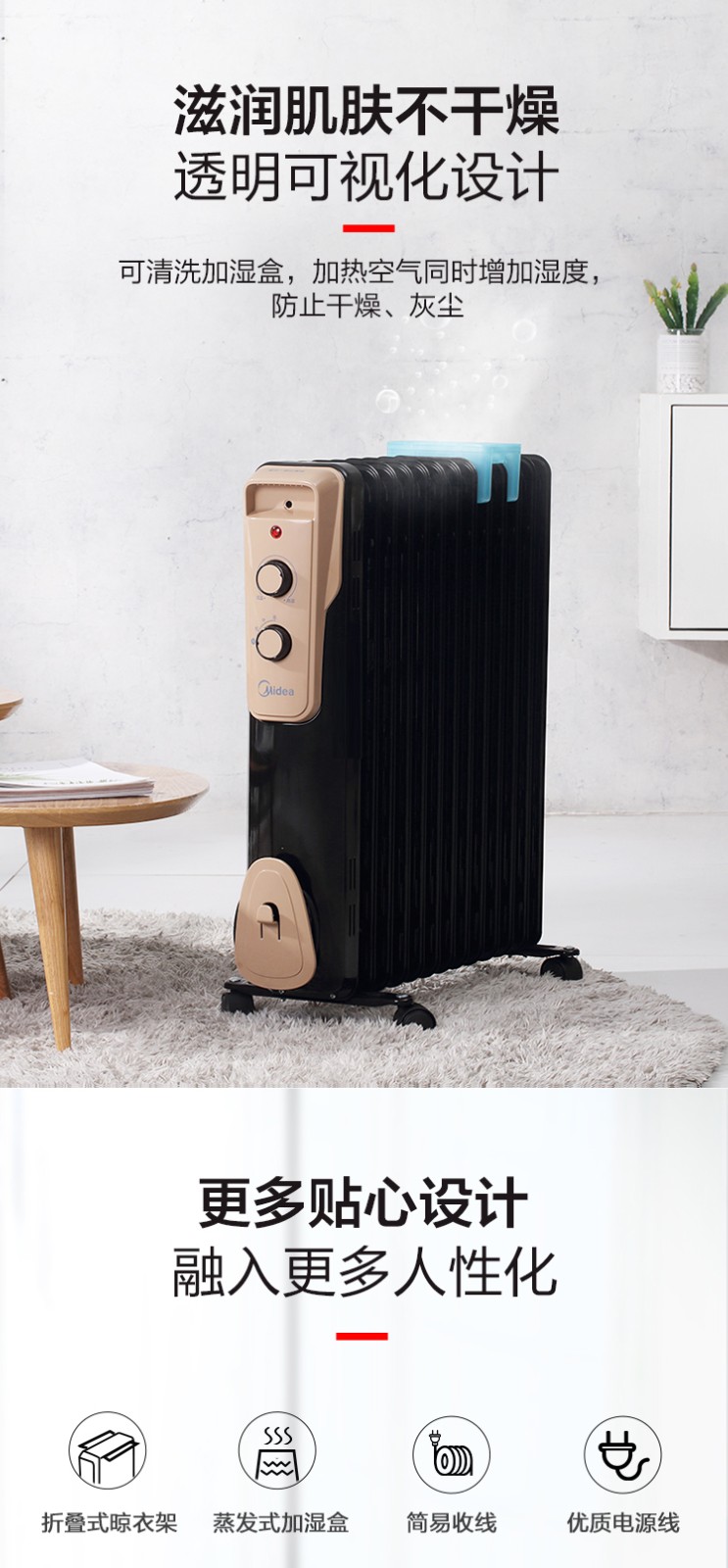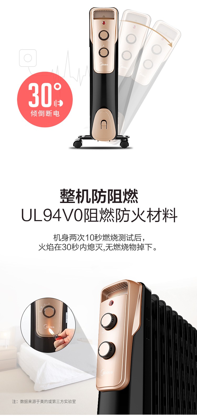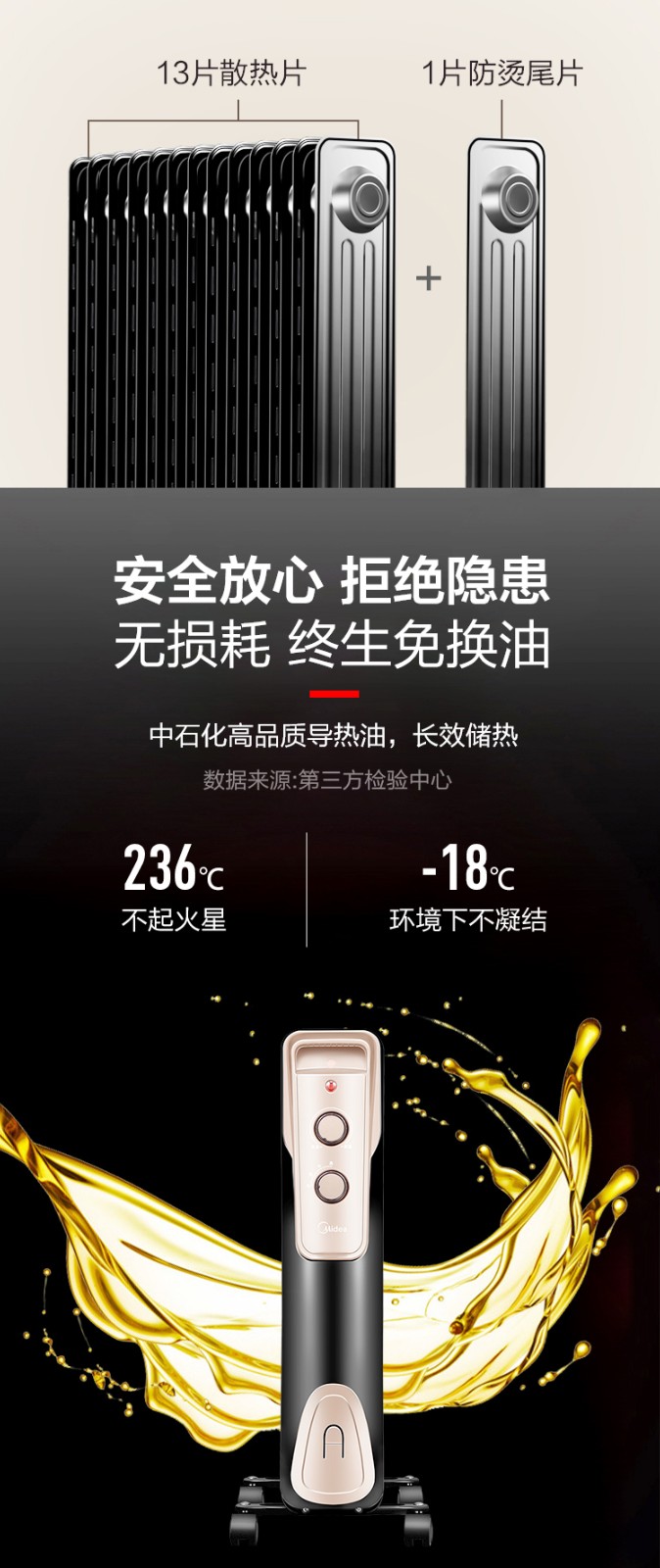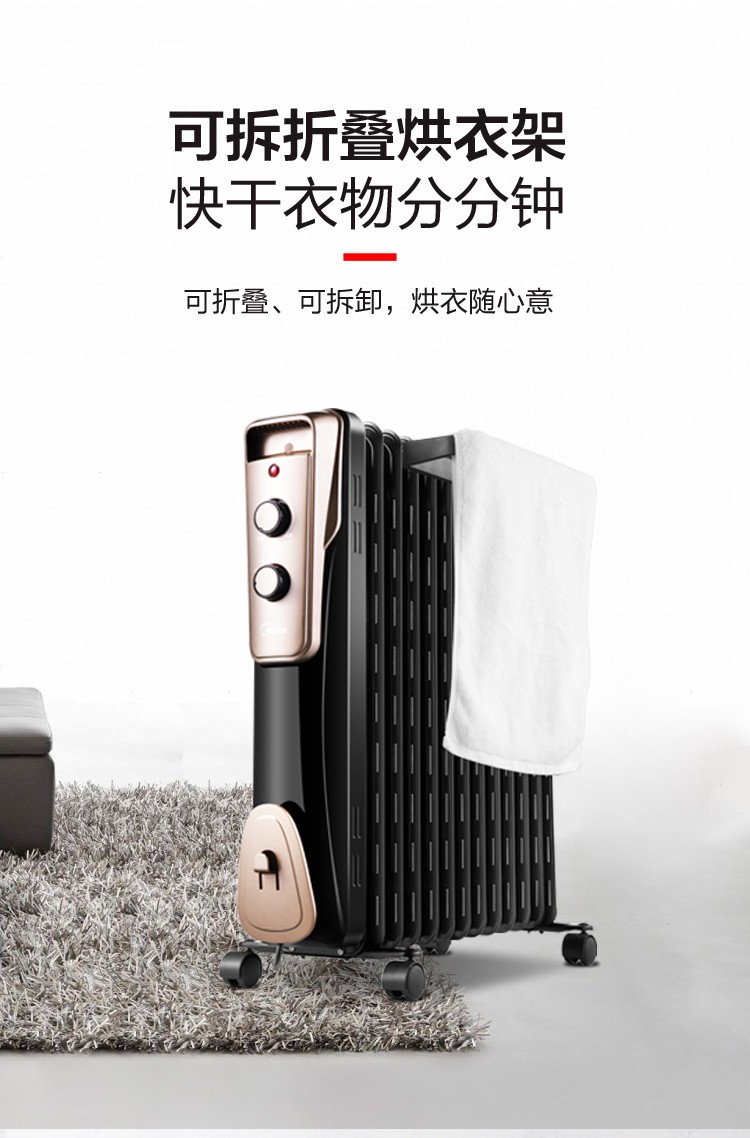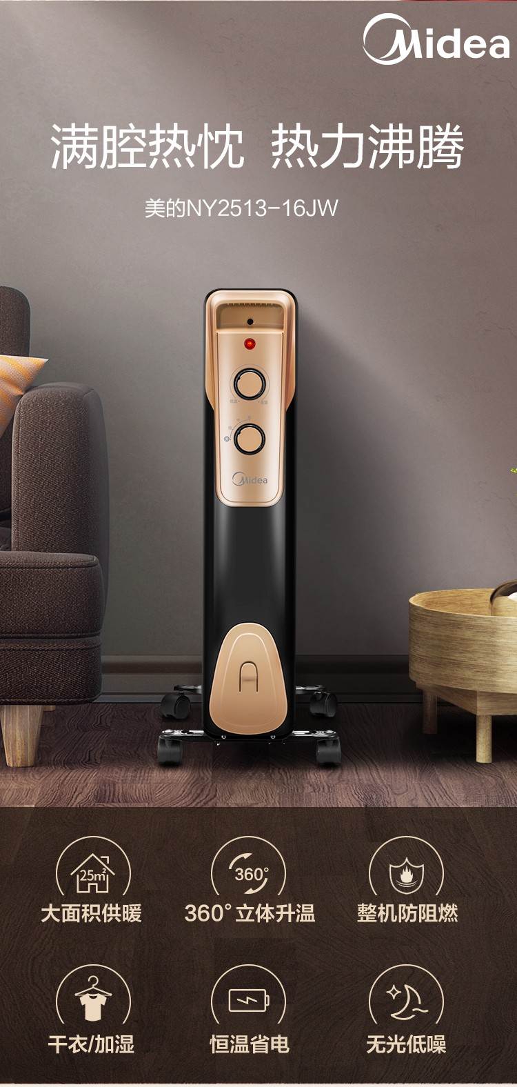 美的(Midea) NY2513-16JW 取暖器/电暖器/电暖气片 13片大面积劲暖电热油汀