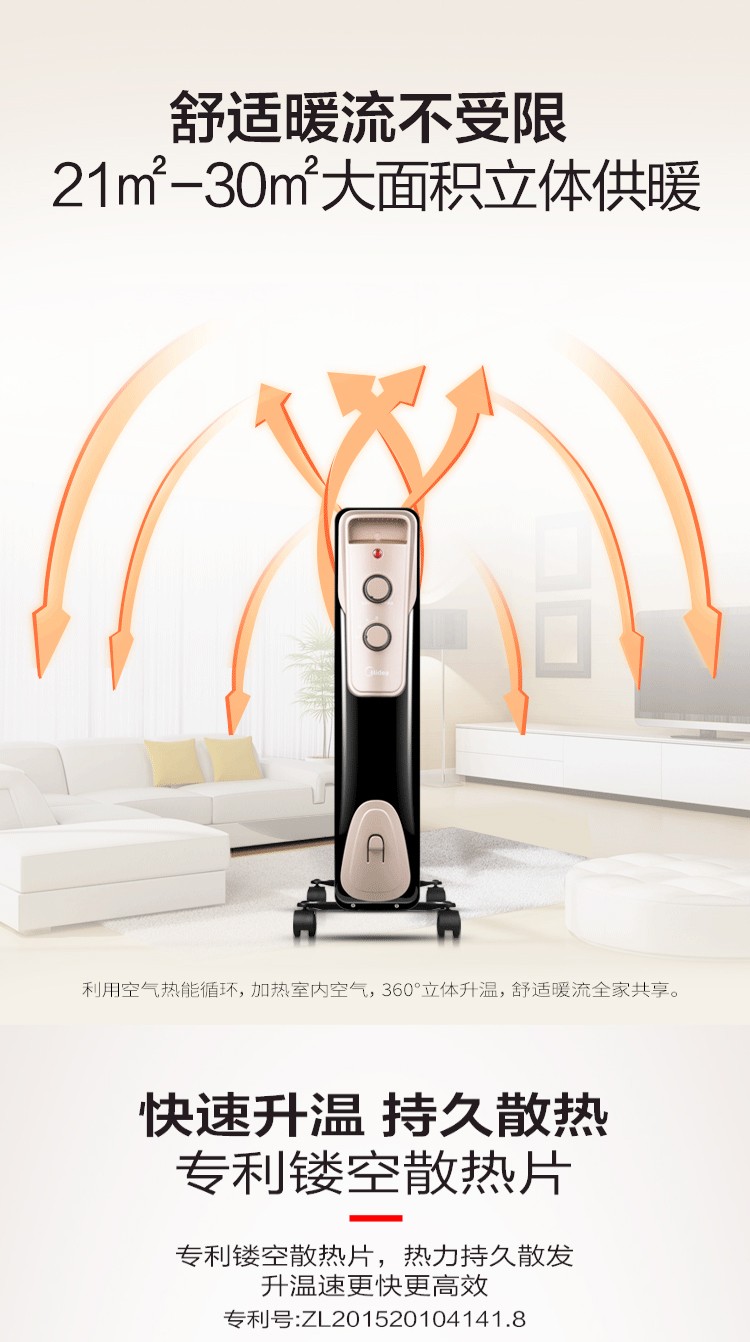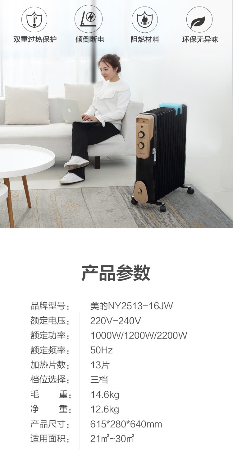 • 商品名称:美的(Midea) NY2513-16JW 取暖器/电暖器/电暖气片 13片大面积劲暖电热油汀