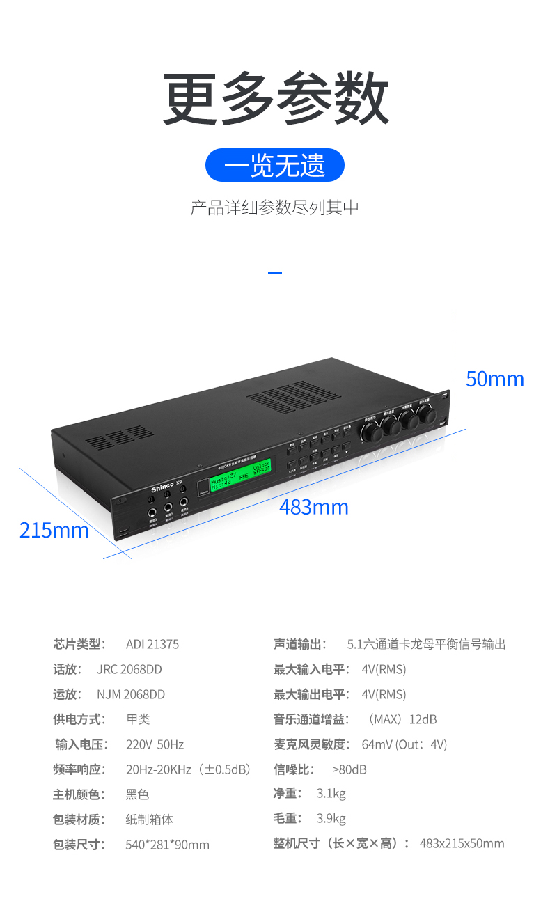 • 商品名称:新科(Shinco)X9 专业前级效果器 美化人声防啸叫反馈抑制器