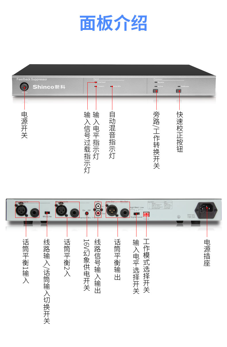 • 商品名称:新科 (Shinco ) DY-800 专业智能麦克风自动反馈抑制器 话筒防啸叫设备