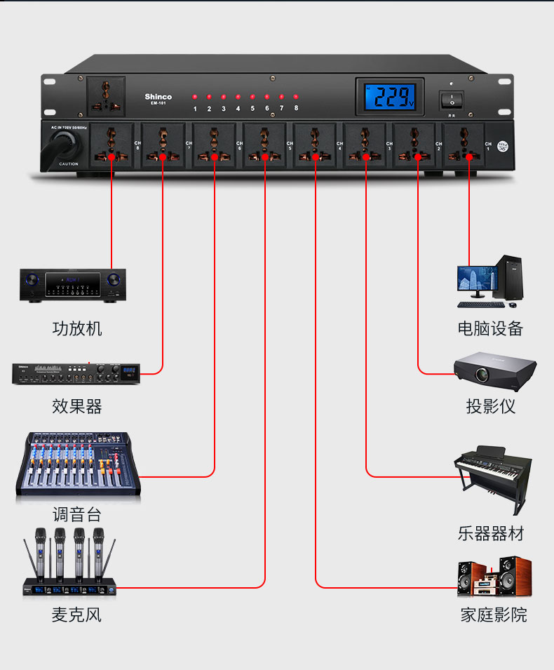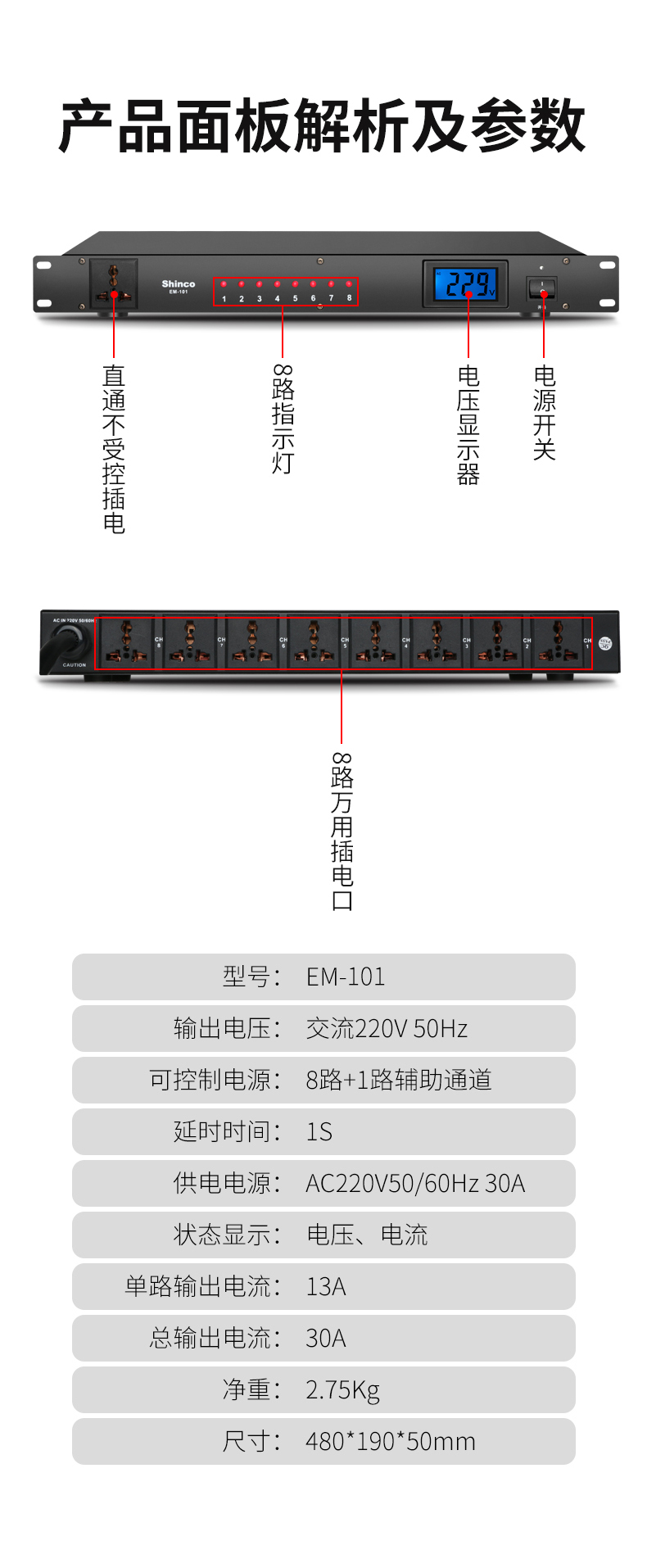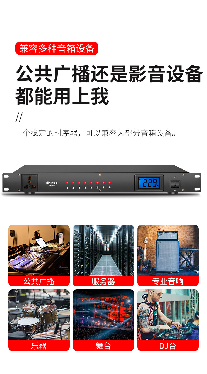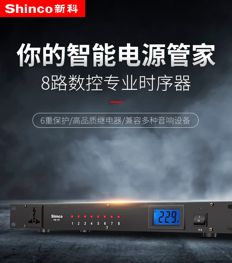 • 商品名称:新科 (Shinco) EM-101 8路电源时序器 会议演出舞台工程音响套装设备电源顺序开关控制器