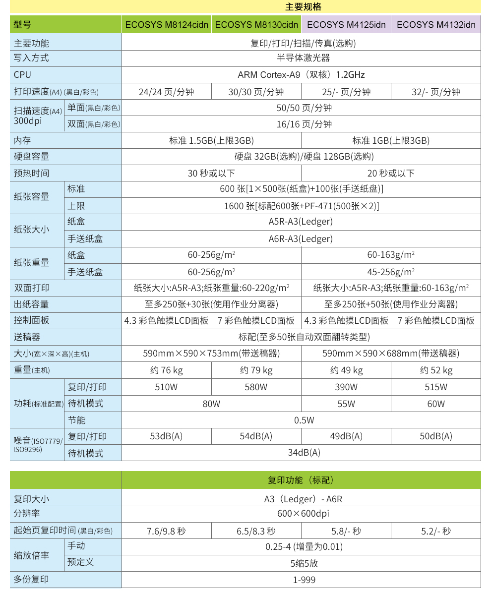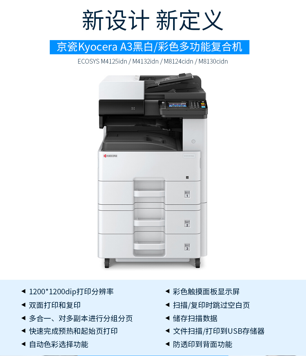 • 商品名称:京瓷 (Kyocera) ECOSYS M8124cidn A3彩色多功能数码复合机 标配含输稿器