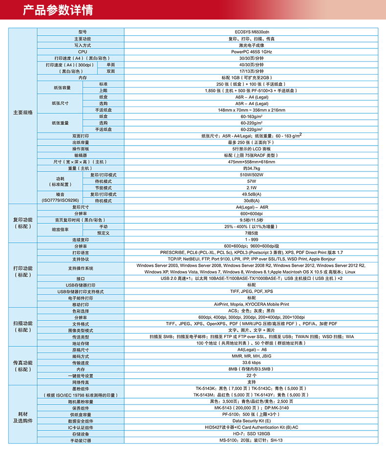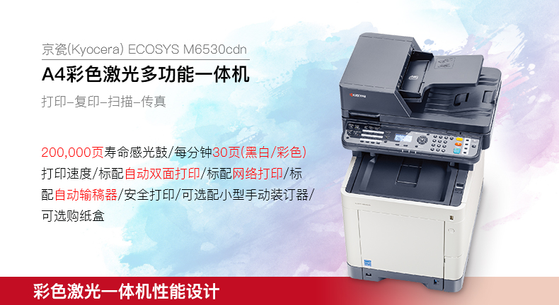 • 商品名称:京瓷(KYOCERA)M6530cdn 彩色激光多功能一体机 (打印 复印 扫描 传真)