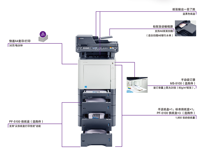 京瓷(KYOCERA)M6530cdn 彩色激光多功能一体机 (打印 复印 扫描 传真)