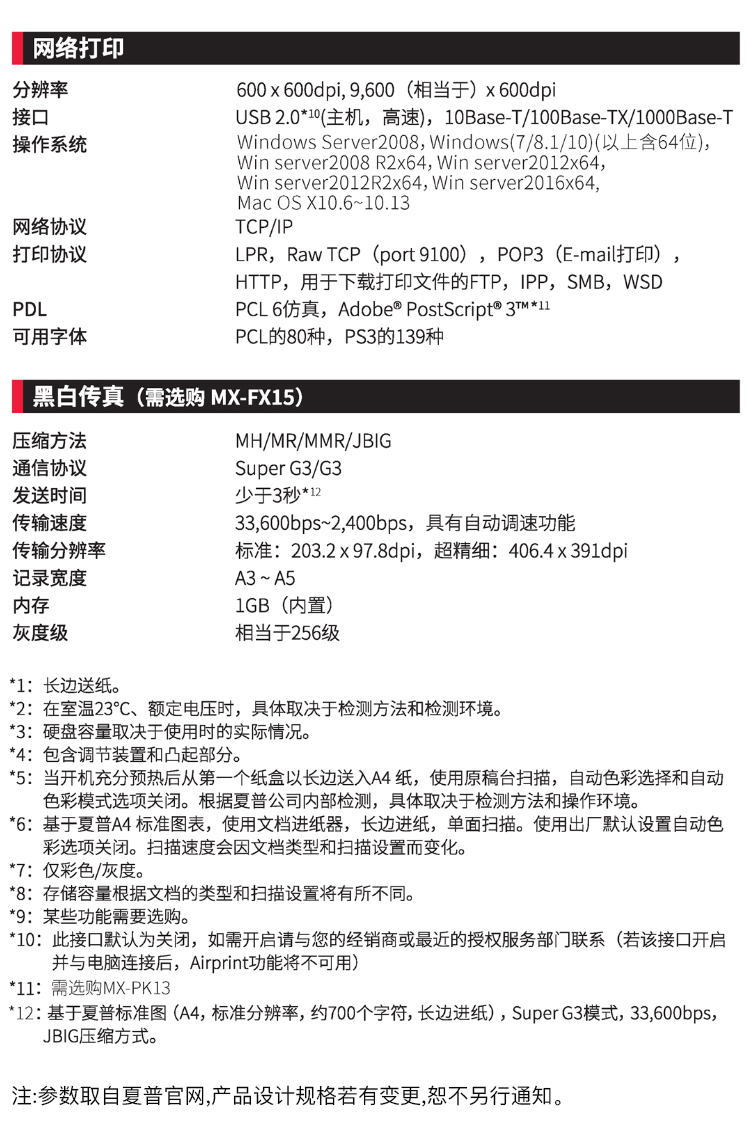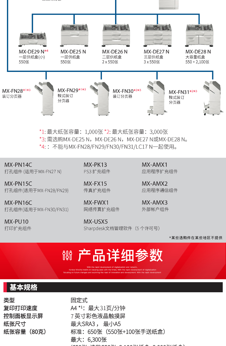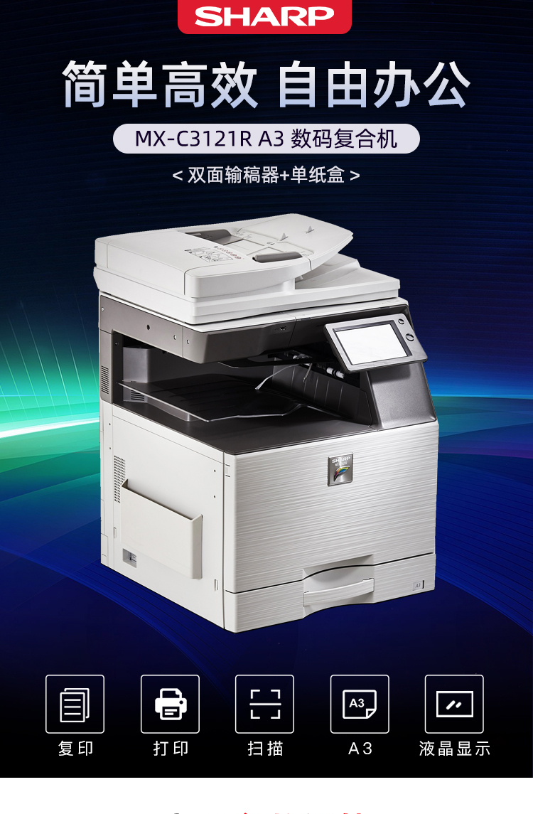 • 商品名称:夏普(SHARP) MX-C3121R A3彩色多功能数码复合机 标配含双面输稿器+单层纸盒