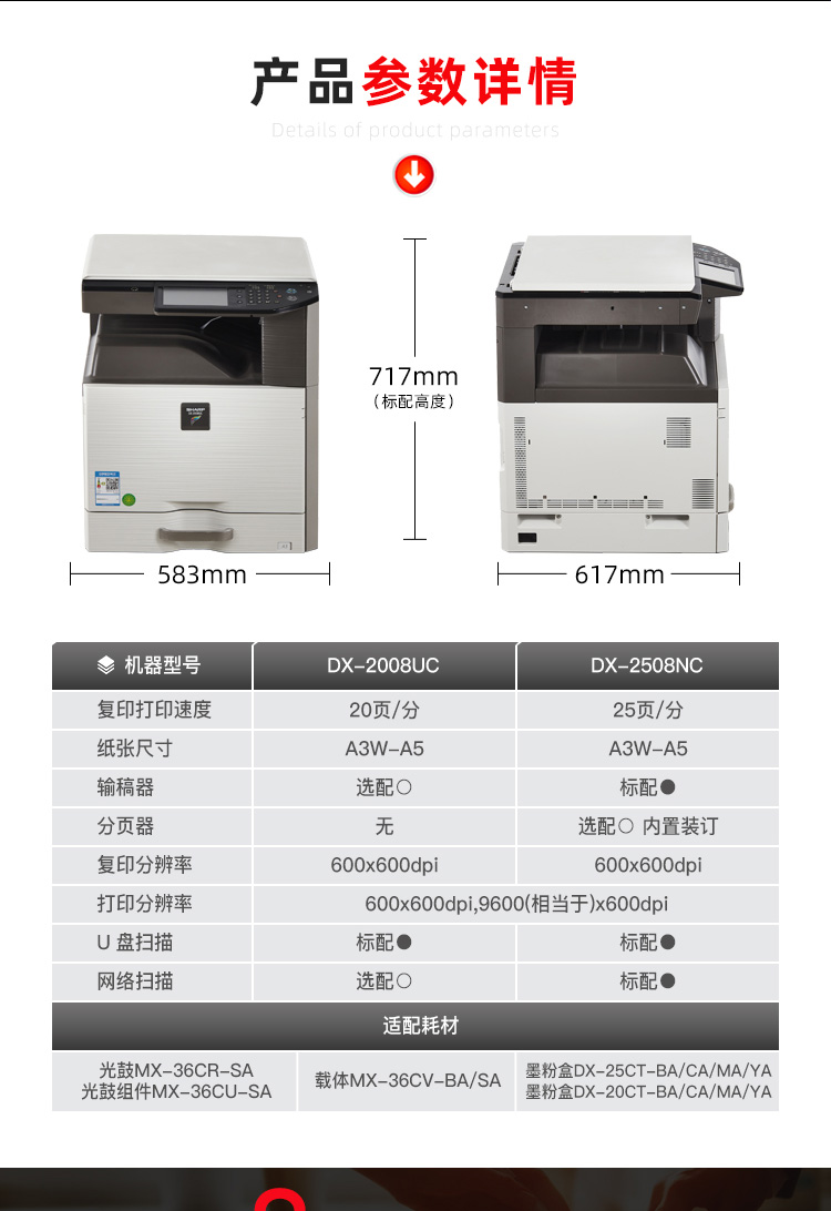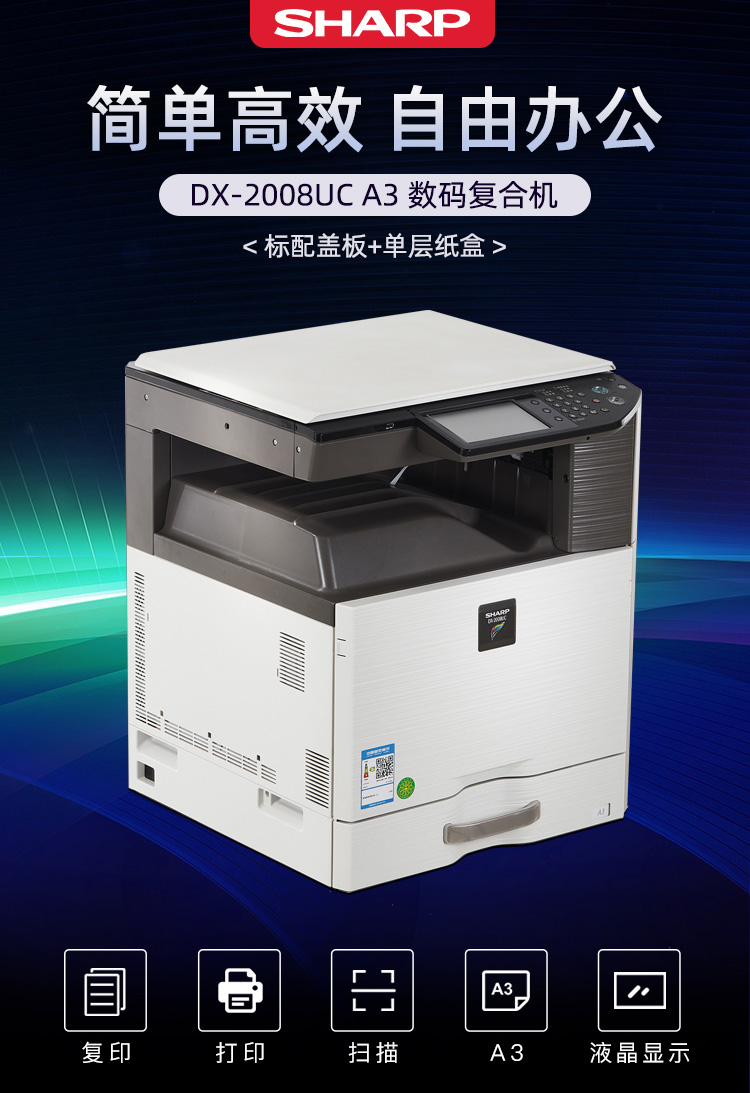 • 商品名称:夏普(SHARP)DX-2008UC A3彩色数码复合机激光打印一体机(盖板+单纸盒)
