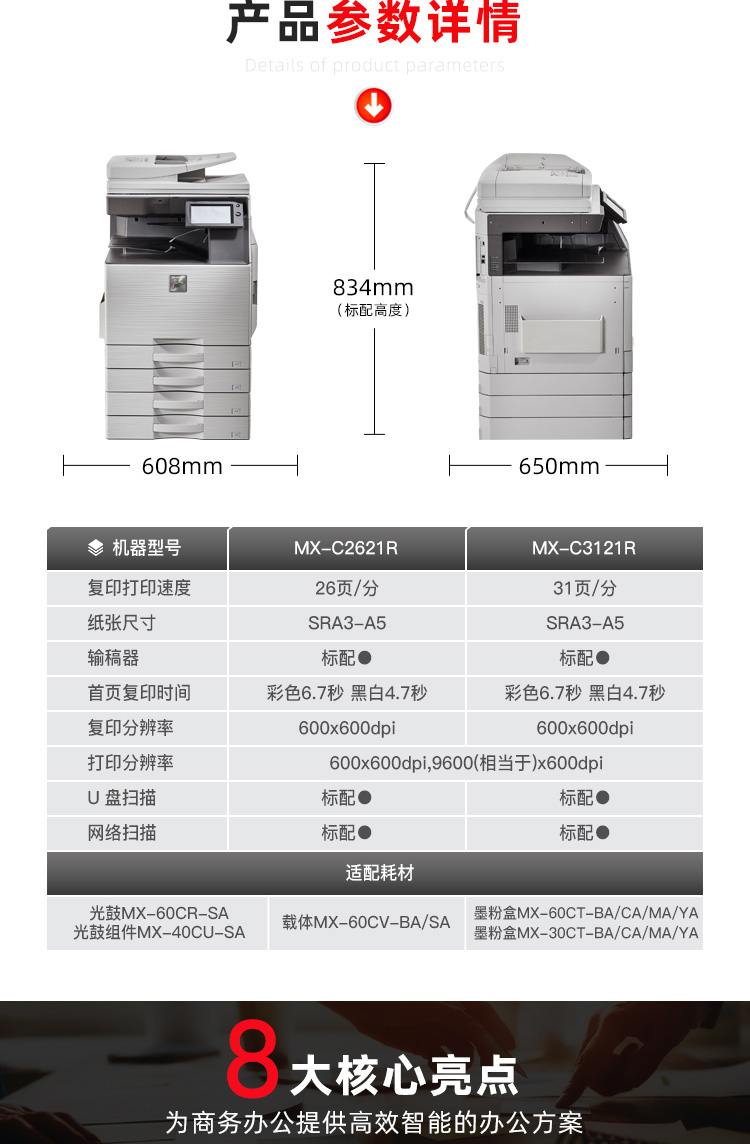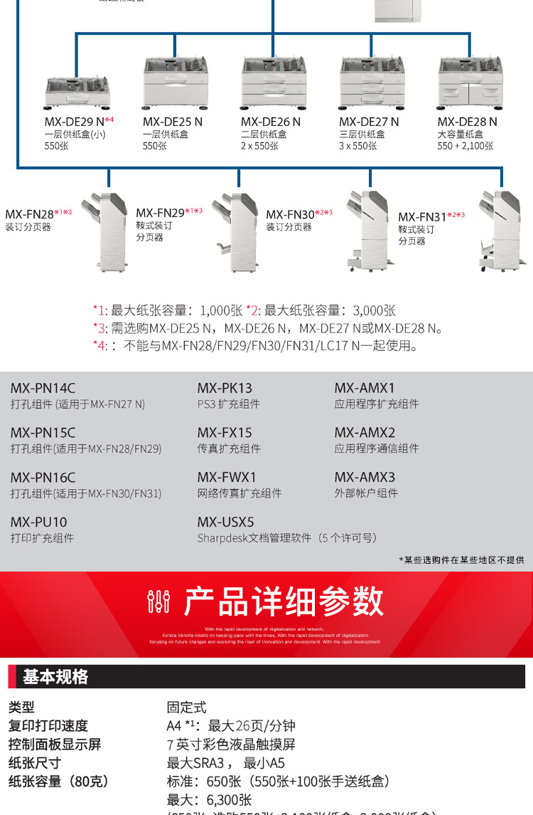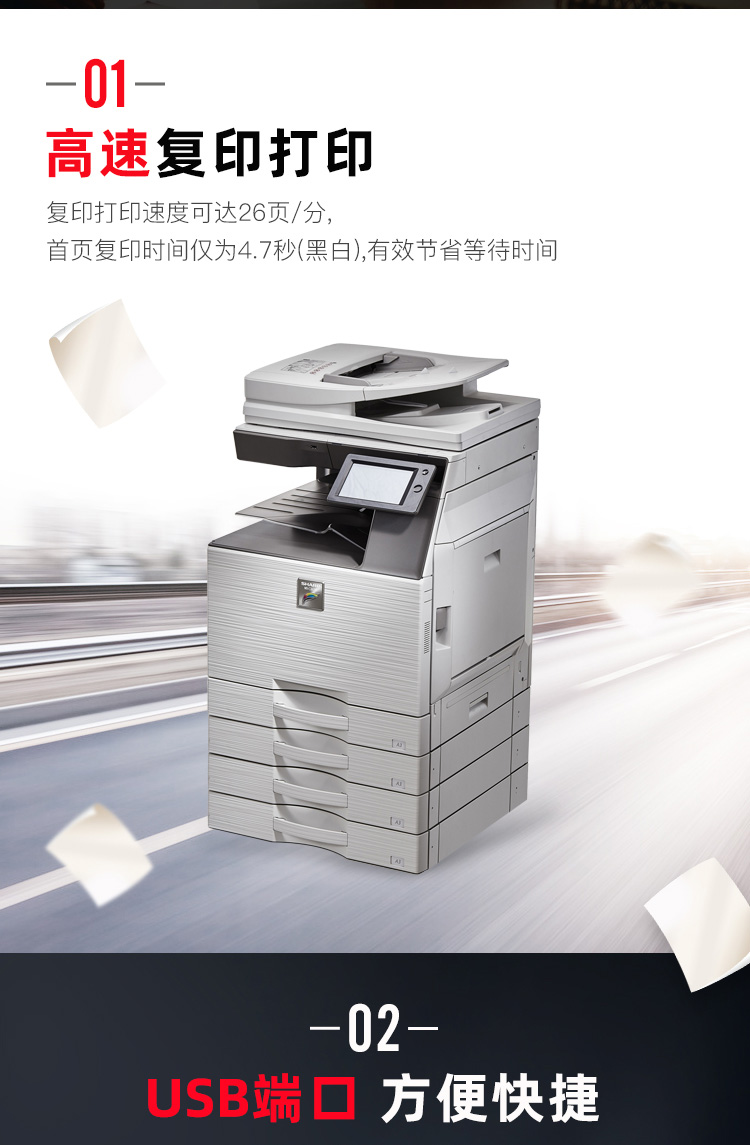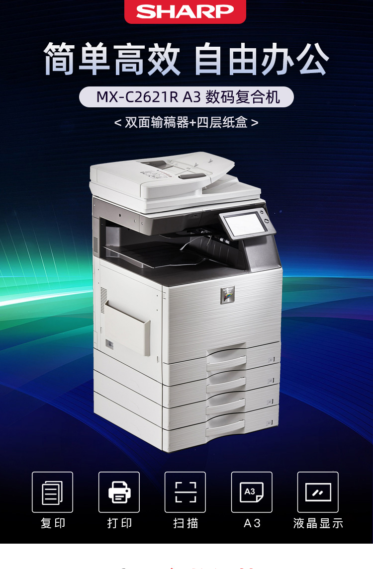 • 商品名称:夏普(SHARP)MX-C2621R A3彩色数码复合机激光打印一体机(含双面输稿器+四层纸盒) 免费上门安装售后