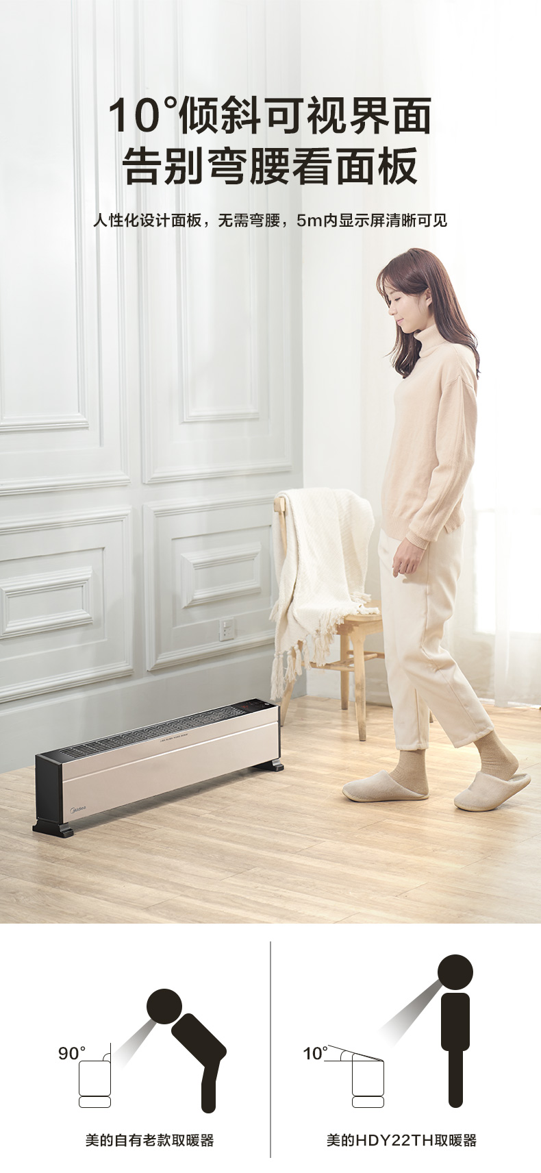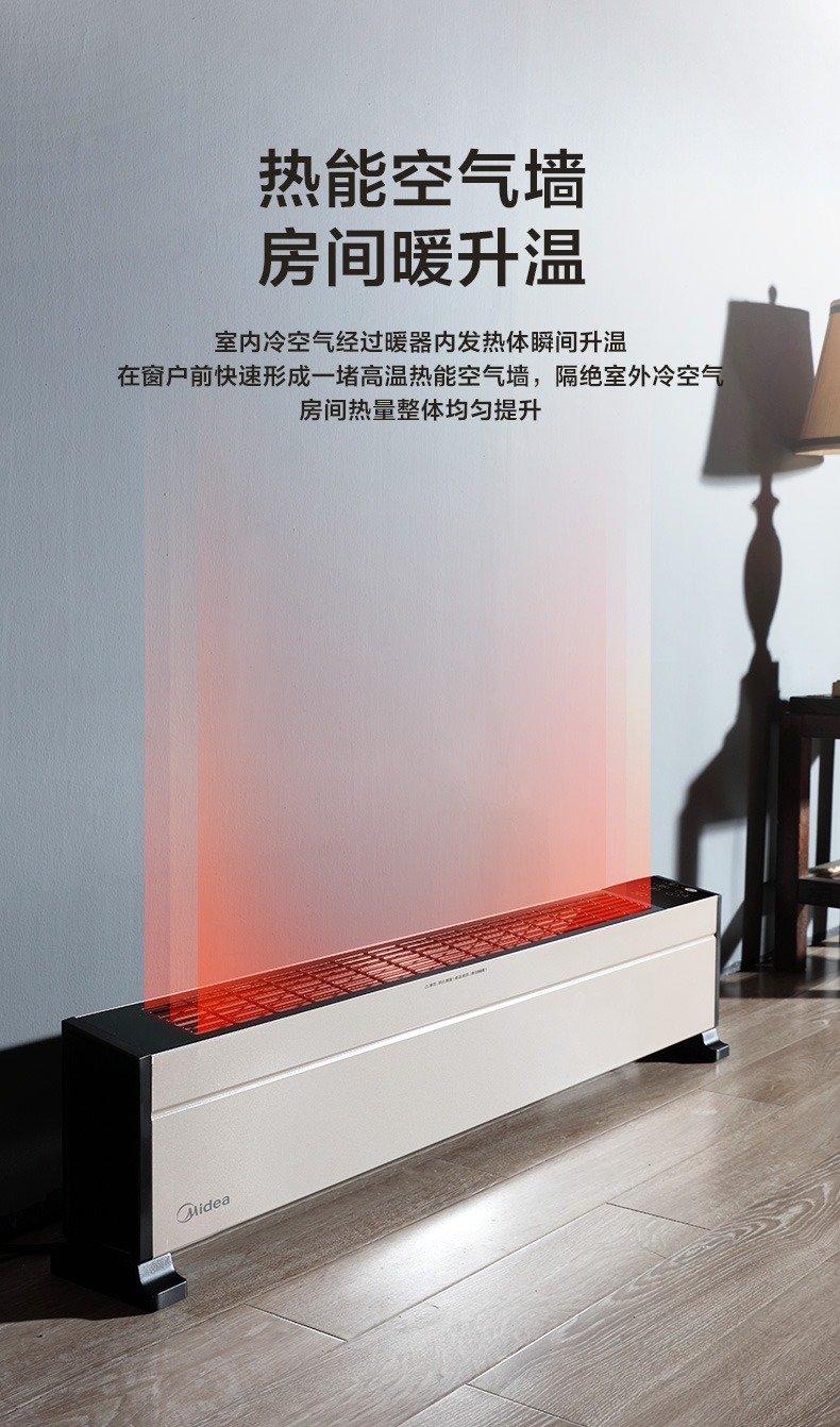 • 商品名称:美的(Midea) NDY-LSX 踢脚线取暖器电暖器地脚线移动地暖电热器 轻奢加湿款