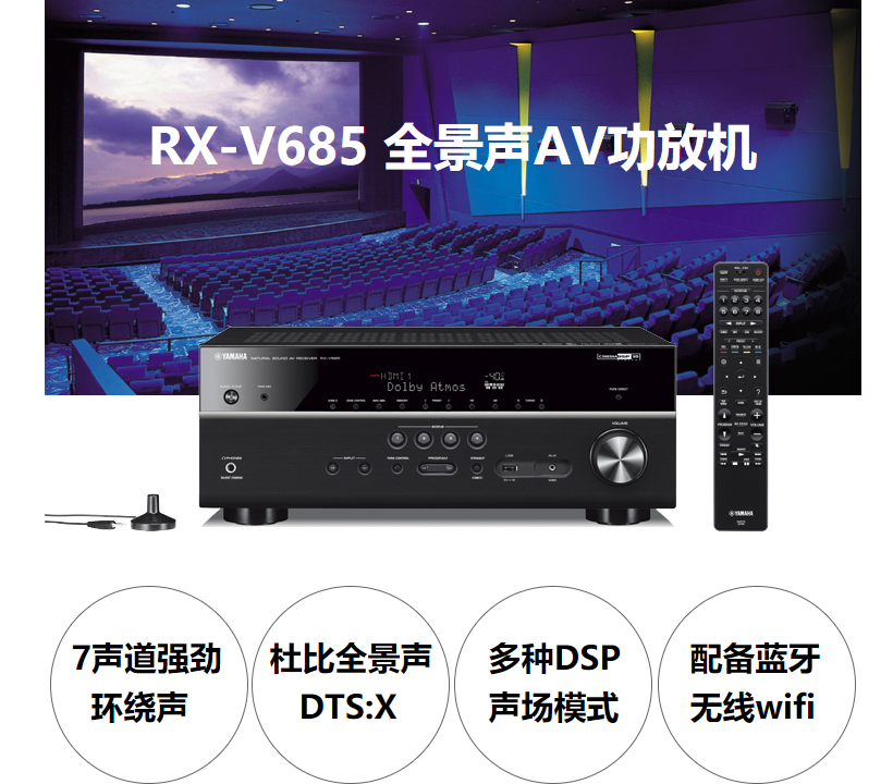 • 商品名称:雅马哈(Yamaha)RX-V685 家庭影院音响7.2声道AV功放机 4K杜比全景声DTS:X 蓝牙WIFI 支持无线环绕 黑色
