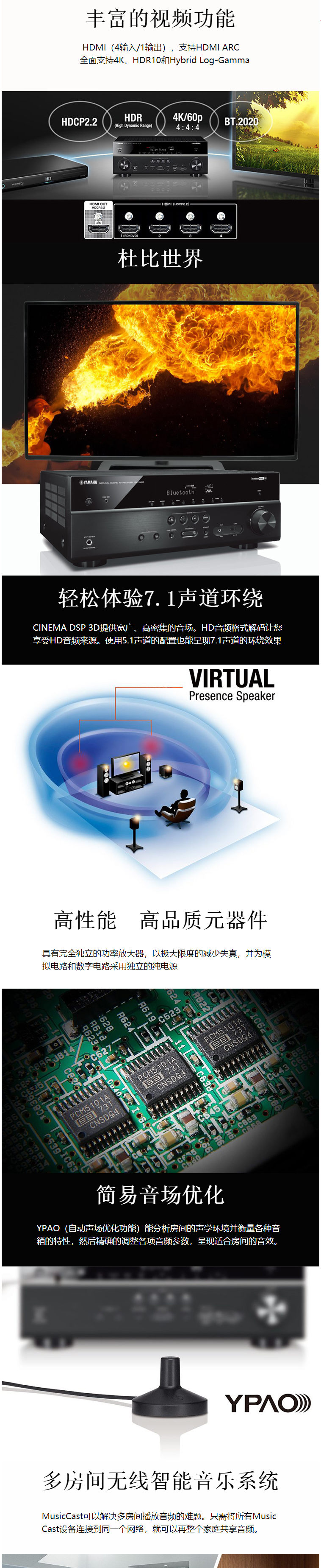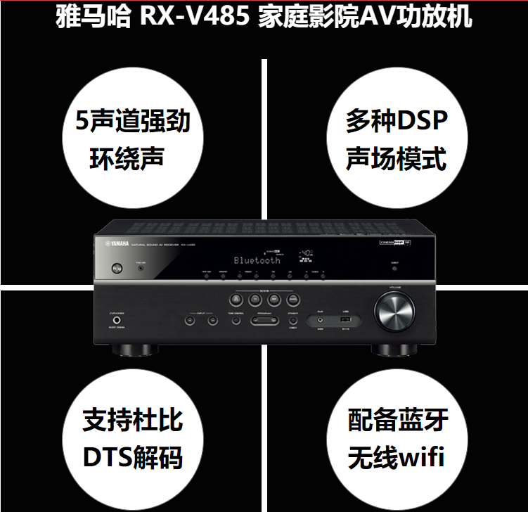 • 商品名称:雅马哈(YAMAHA)RX-V485 音响音箱 家庭影院功放 5.1声道数字功率放大器 蓝牙/WIFI 黑色