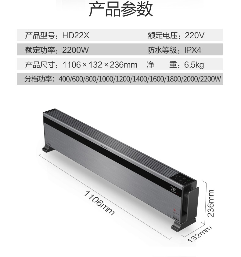 • 商品名称:美的(Midea) HD16X 踢脚线取暖器/电暖器电暖气电暖风/遥控防水