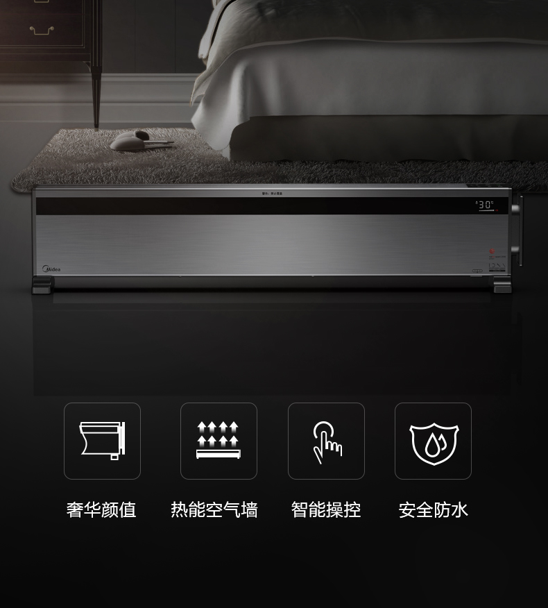 美的(Midea) HD16X 踢脚线取暖器/电暖器电暖气电暖风/遥控防水