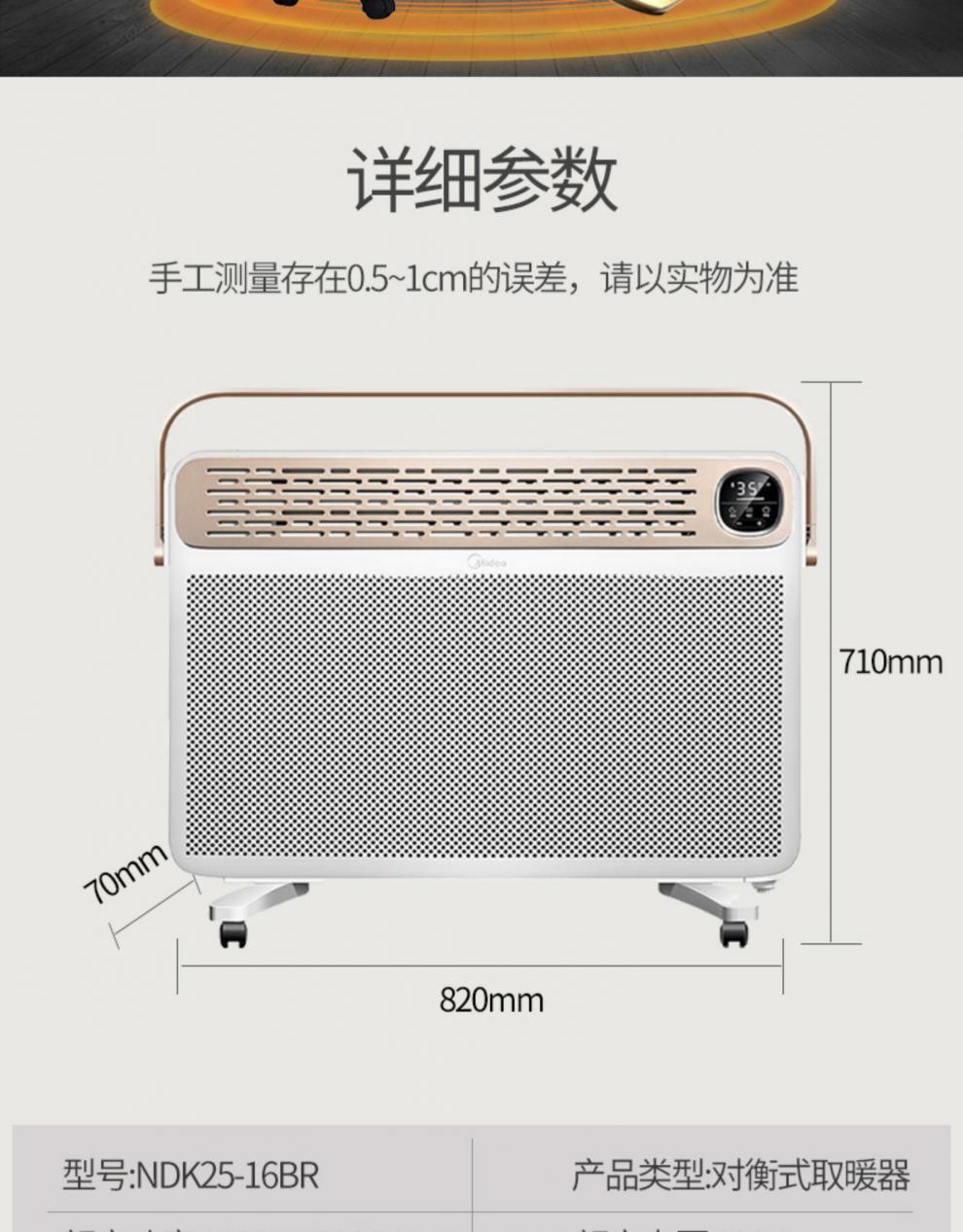 • 商品名称:美的(Midea) NDK25-16BR 取暖器家电暖气双面速热防水暖风机节能省电暖器 灰色