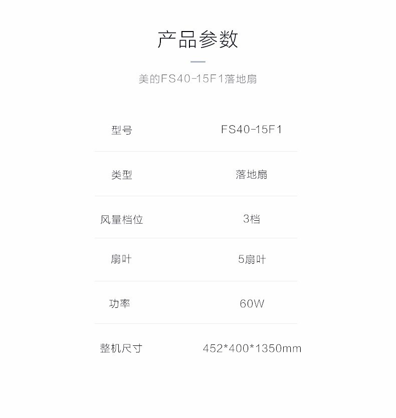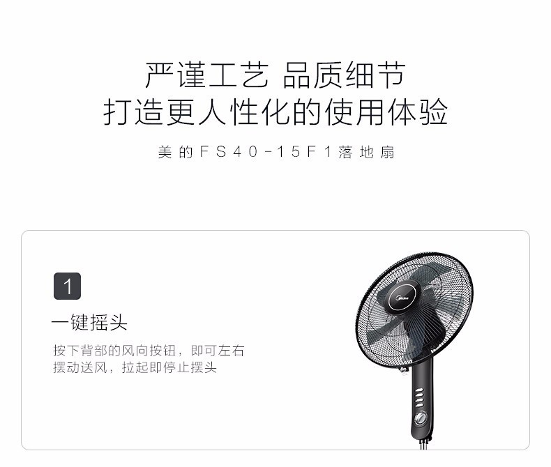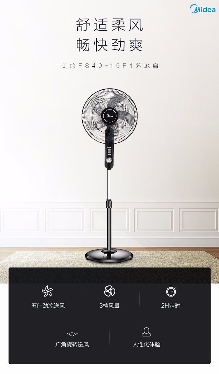 • 商品名称:美的(Midea) FS40-15F1 电风扇落地扇立式风扇家用转页扇 黑色