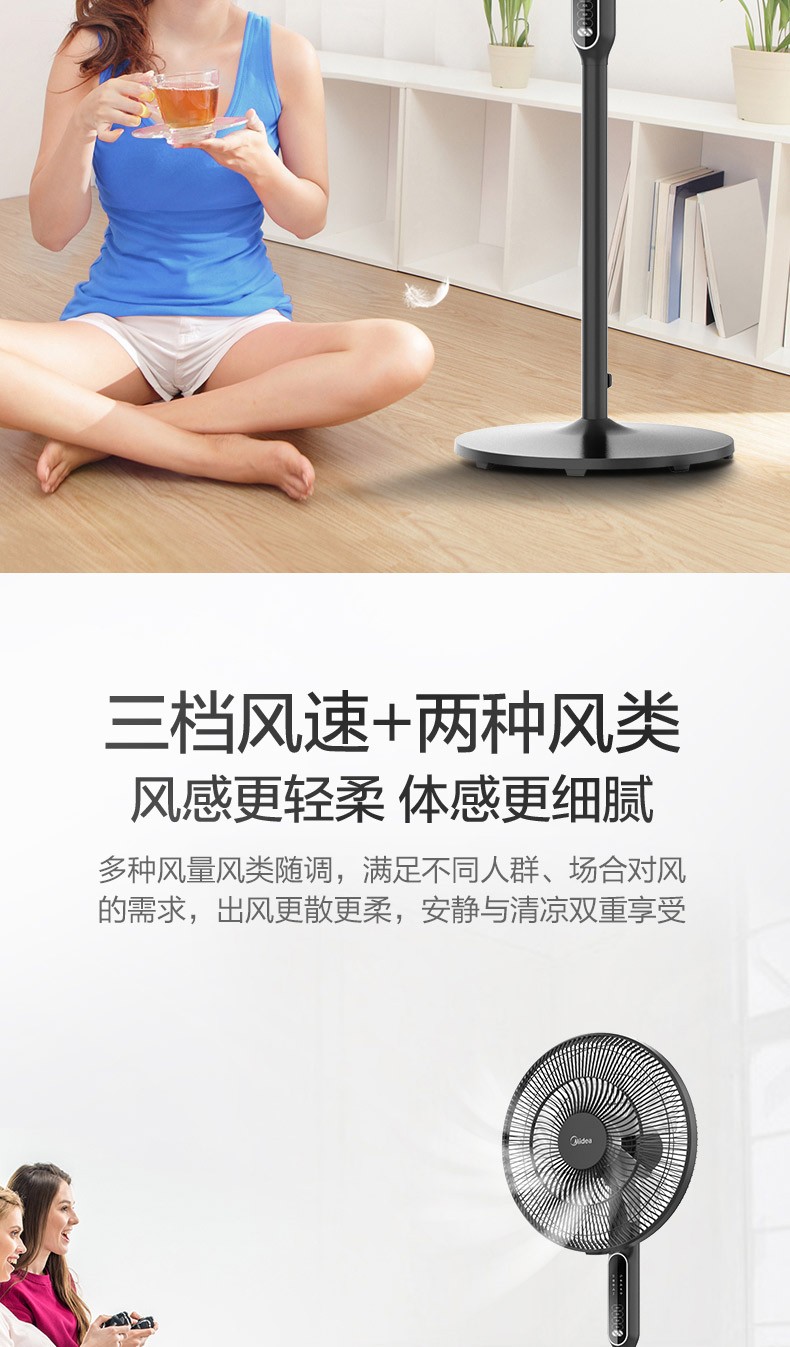 美的(Midea)FSA40YCR 落地扇电风扇京东转页静音立式遥控宿舍便携