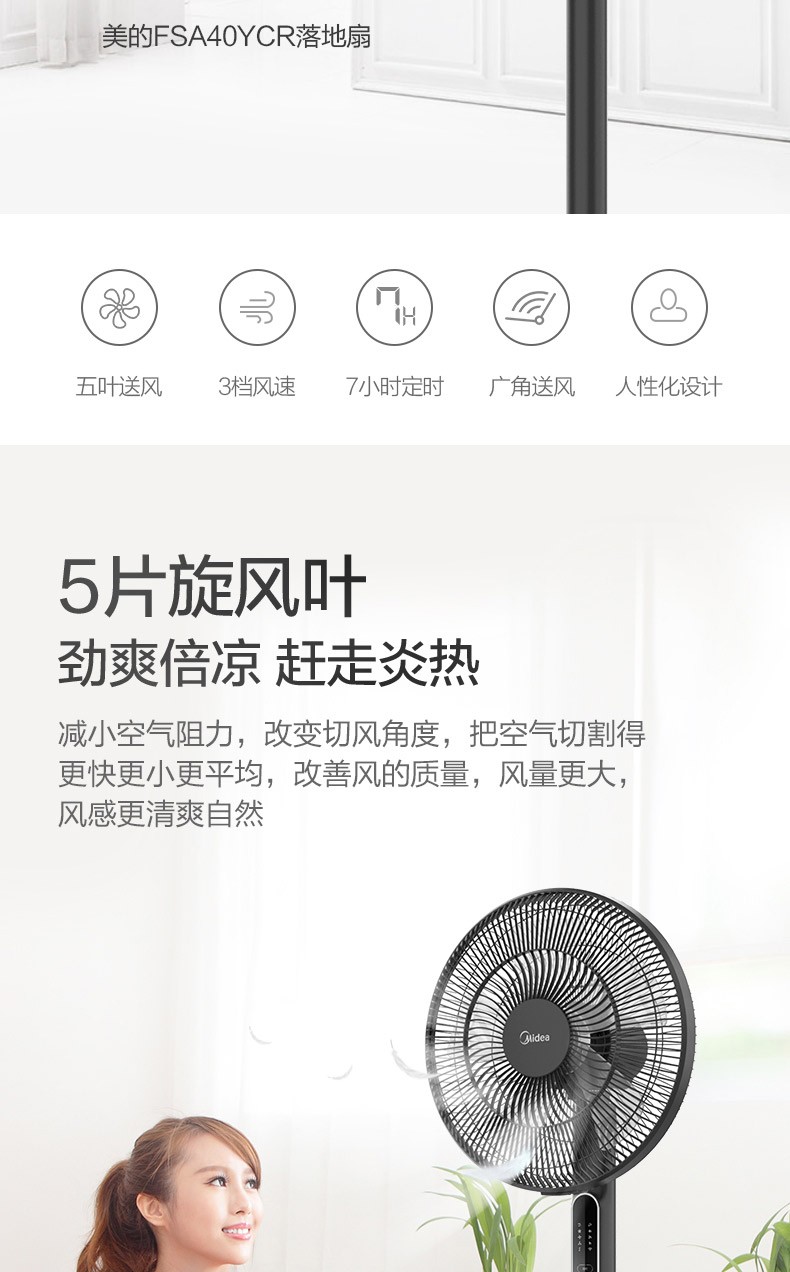 • 商品名称:美的(Midea)FSA40YCR 落地扇电风扇京东转页静音立式遥控宿舍便携