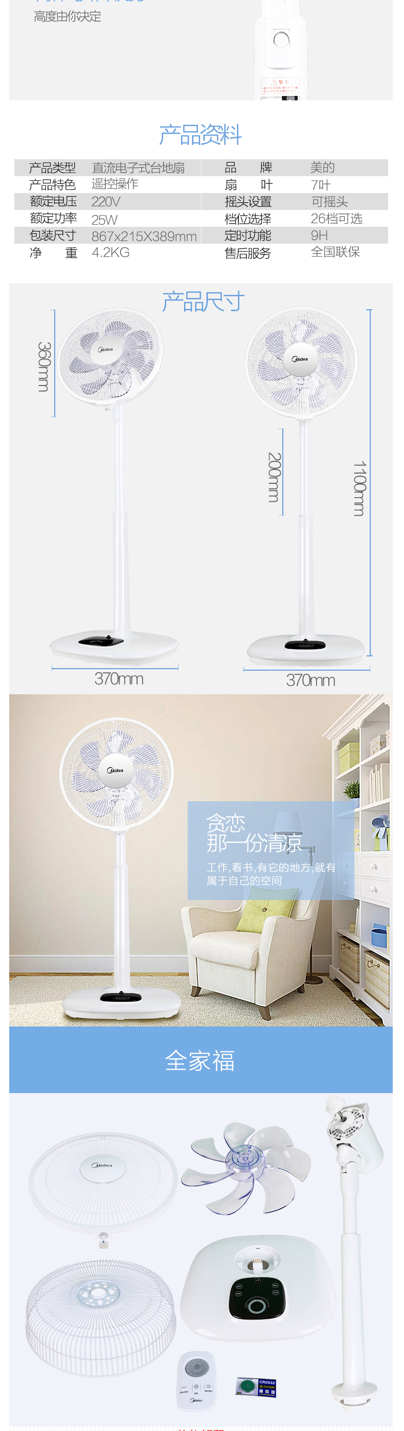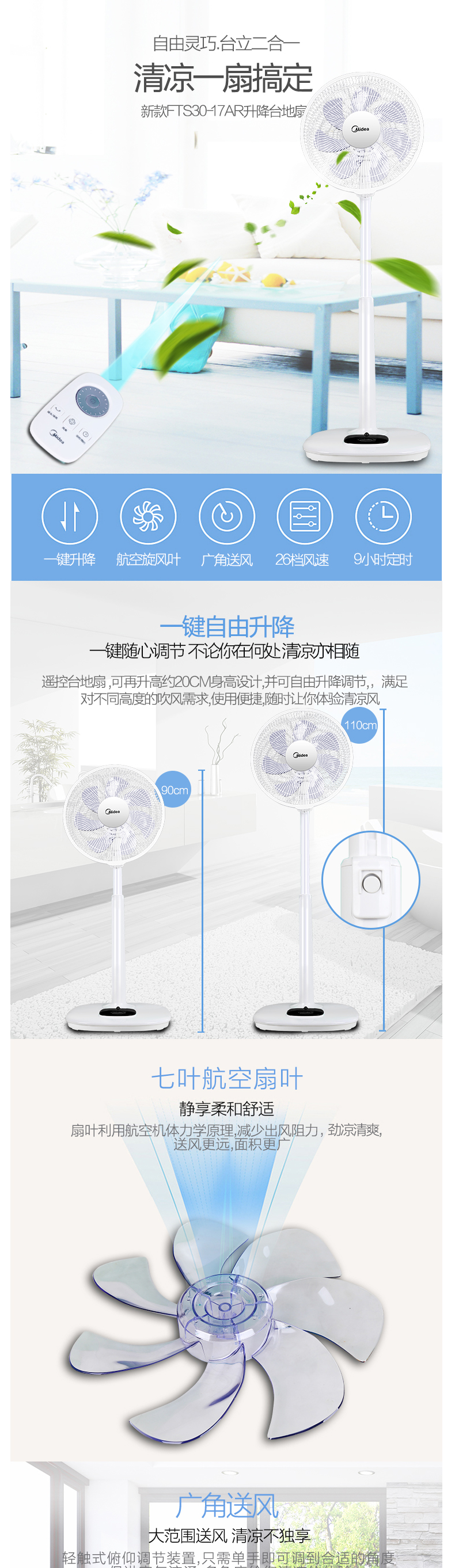 • 商品名称:美的(Midea) FTS30-17AR 台地变频电风扇家用落地扇定时遥控