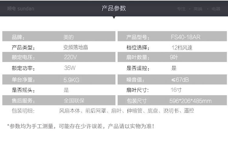 • 商品名称:美的(Midea) FS40-18AR 落地扇遥控台式电风扇家用变频台扇新品 白色 遥控