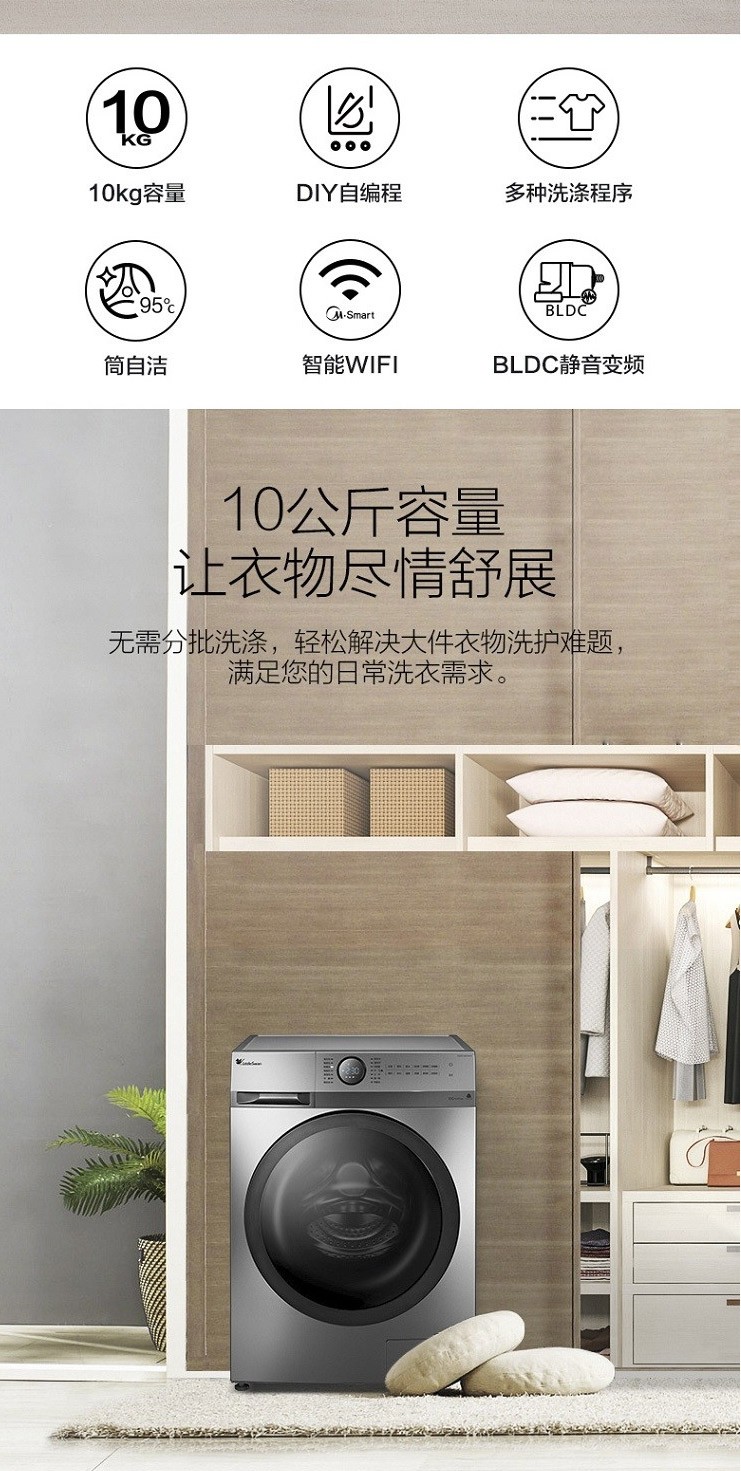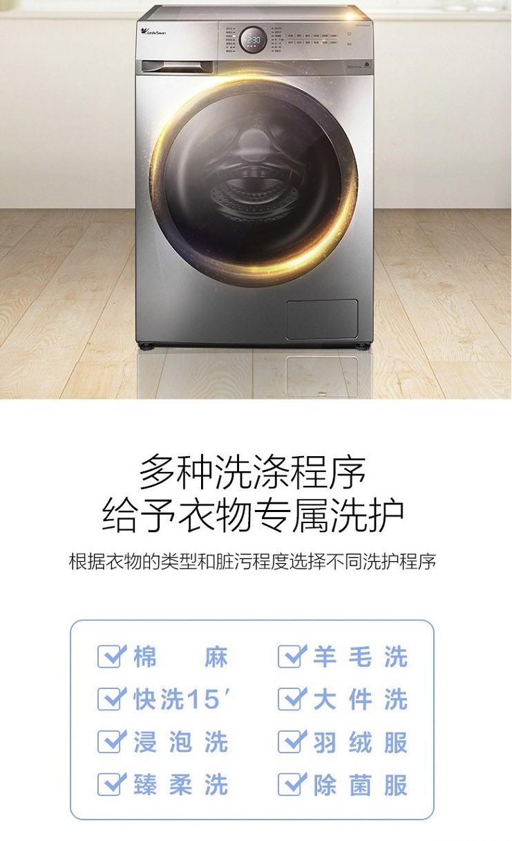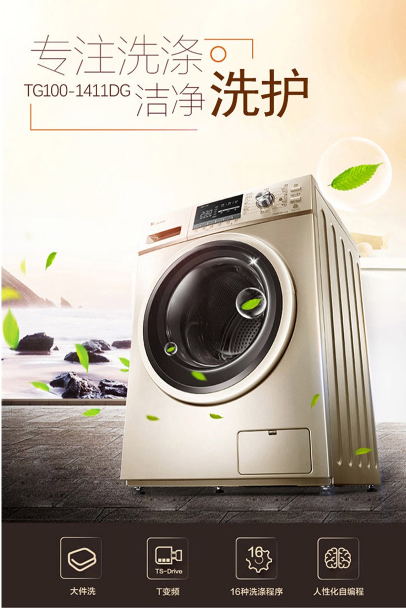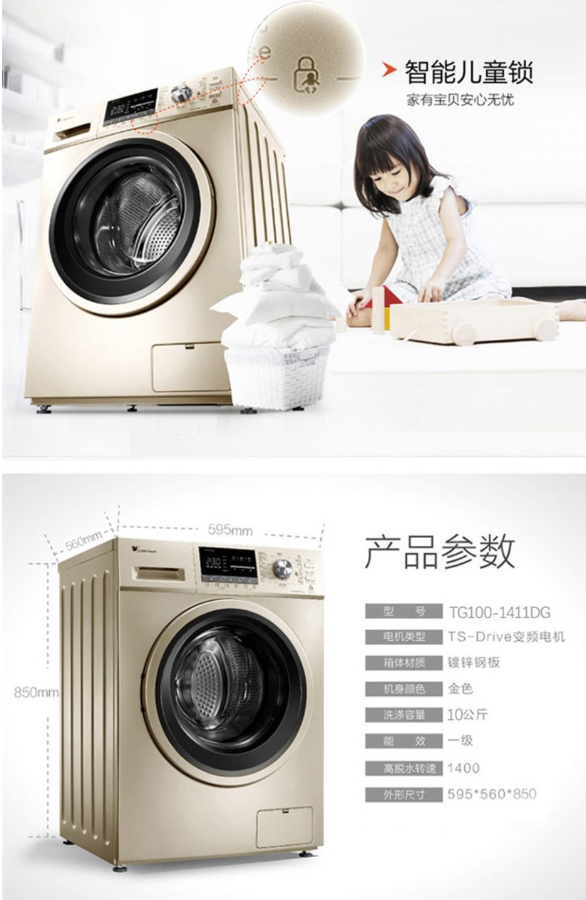 • 商品名称:小天鹅(LittleSwan) TG100-1411DG 全自动变频滚筒家用洗衣机节能变频高温筒自洁洗衣机 10kg