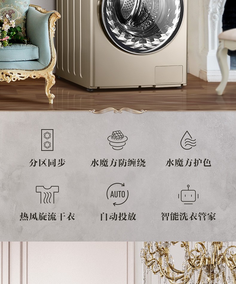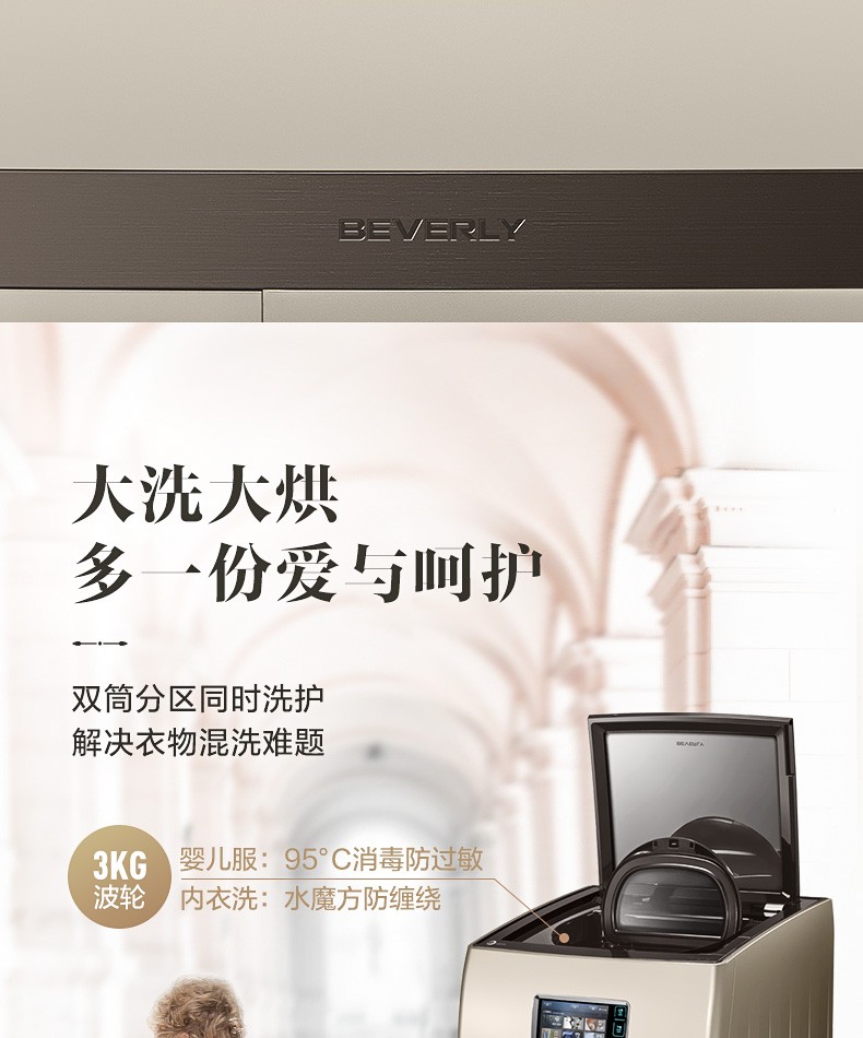 小天鹅(LittleSwan)比佛利 BVL1F150G6 15公斤洗烘一体变频带烘干滚筒洗衣机 金色