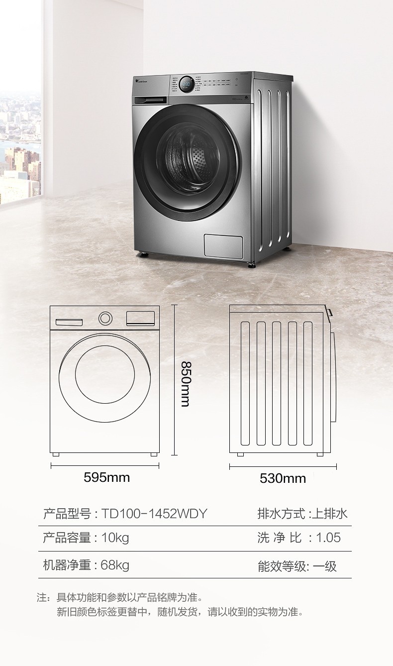 • 商品名称:小天鹅(LittleSwan) TD100-1452WDY 滚筒洗衣机全自动 变频智能家电 10公斤
