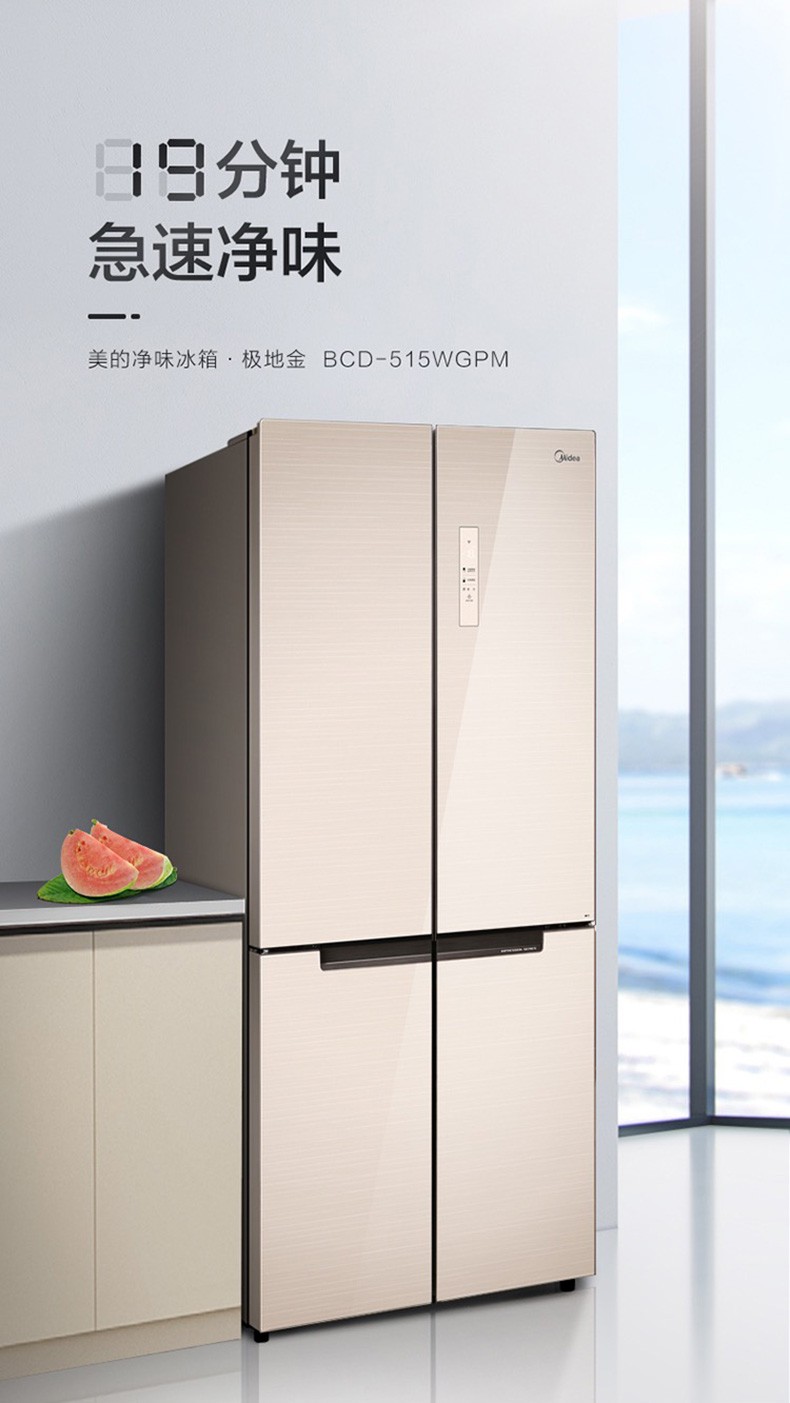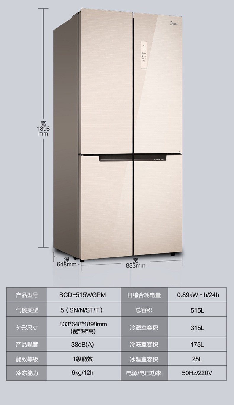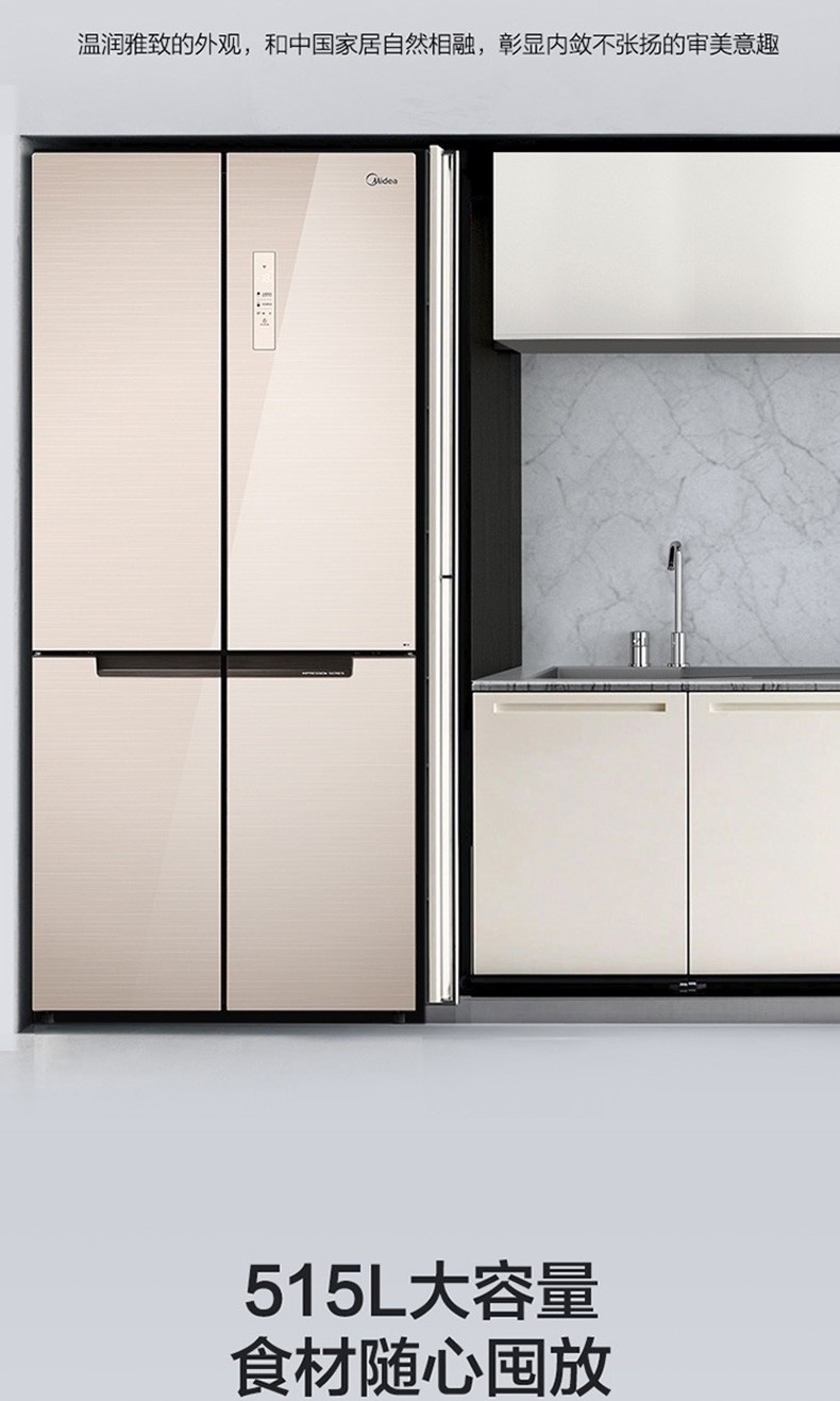 • 商品名称:美的(Midea) BCD-515WGPM 双开门十字对开门冰箱 双变频风冷无霜 515L 极地金