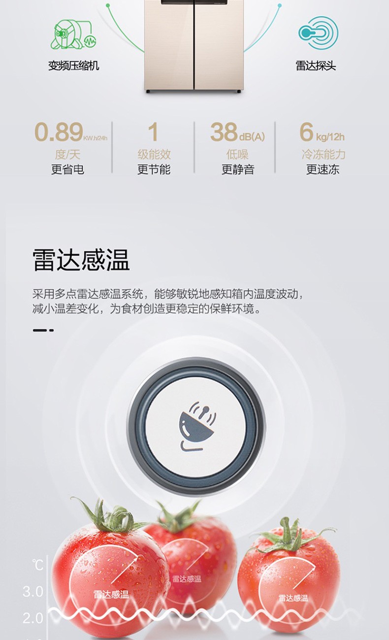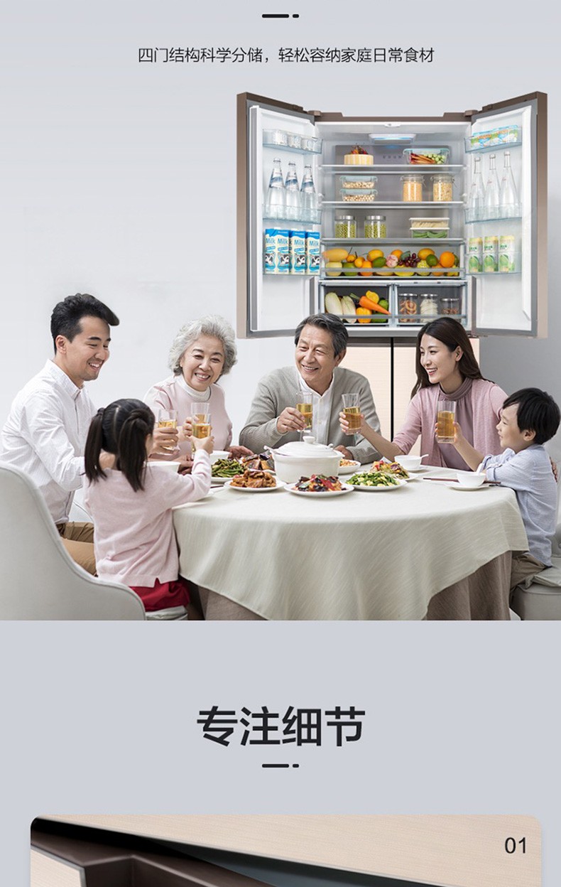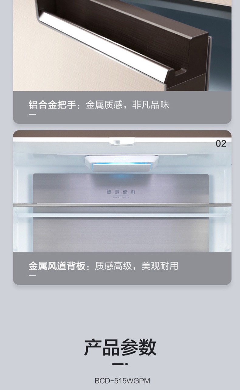 • 商品名称:美的(Midea) BCD-515WGPM 双开门十字对开门冰箱 双变频风冷无霜 515L 极地金
